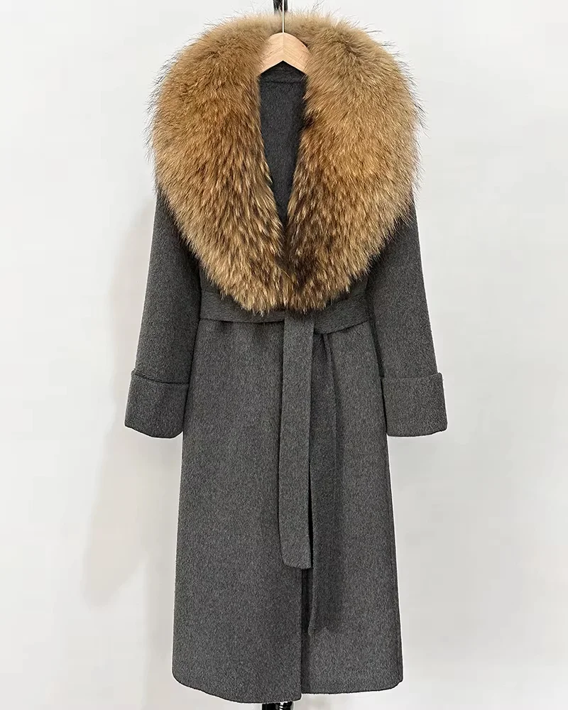 Manteau femme en laine et cachemire – Nouveau modèle automne-hiver à col en véritable fourrure de renard, double face et chaud