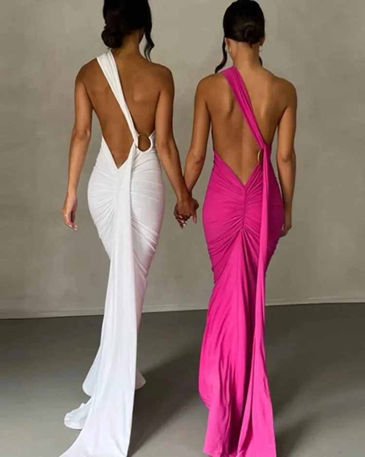Robe Longue à Manches Courtes et Col Bateau pour Femme