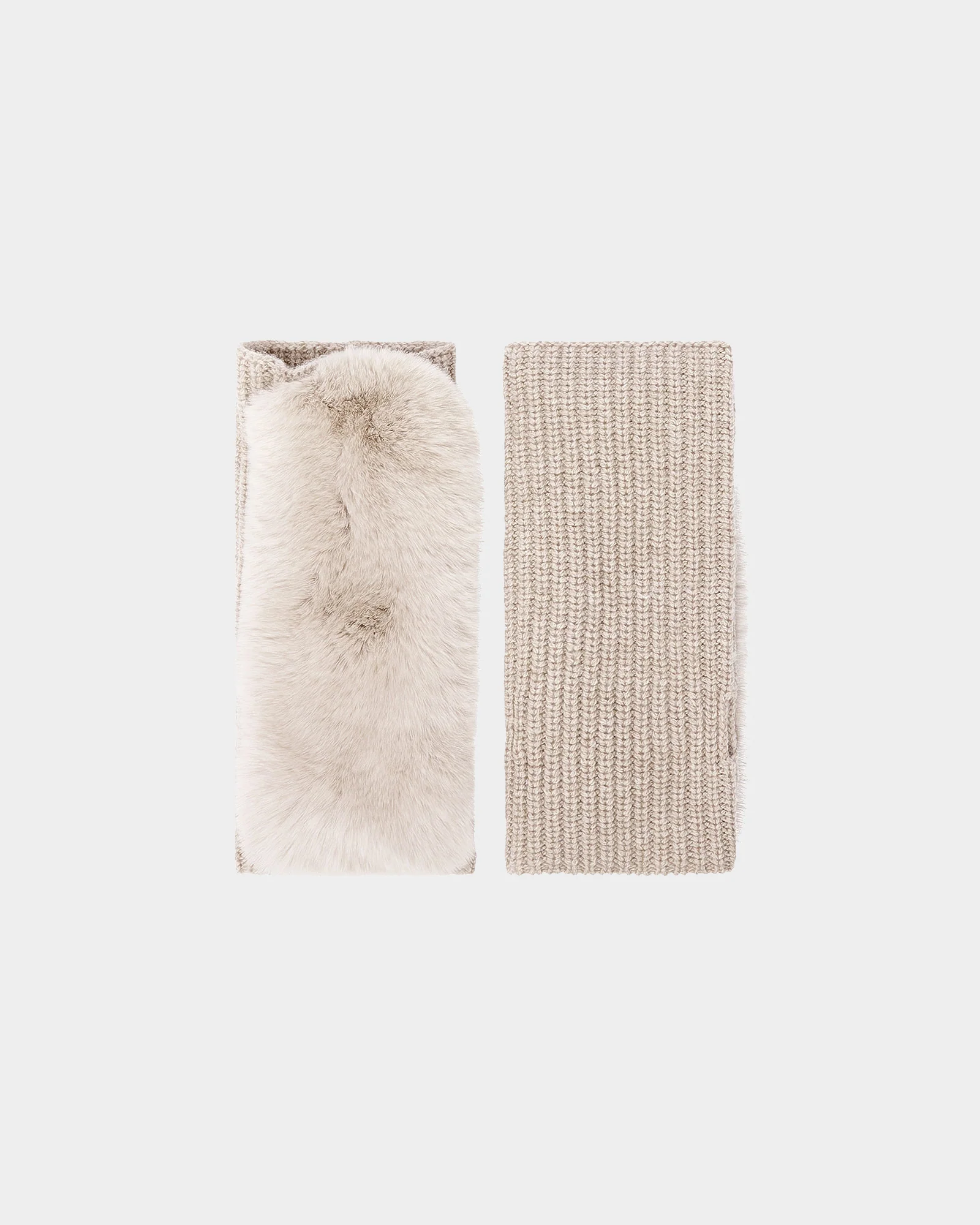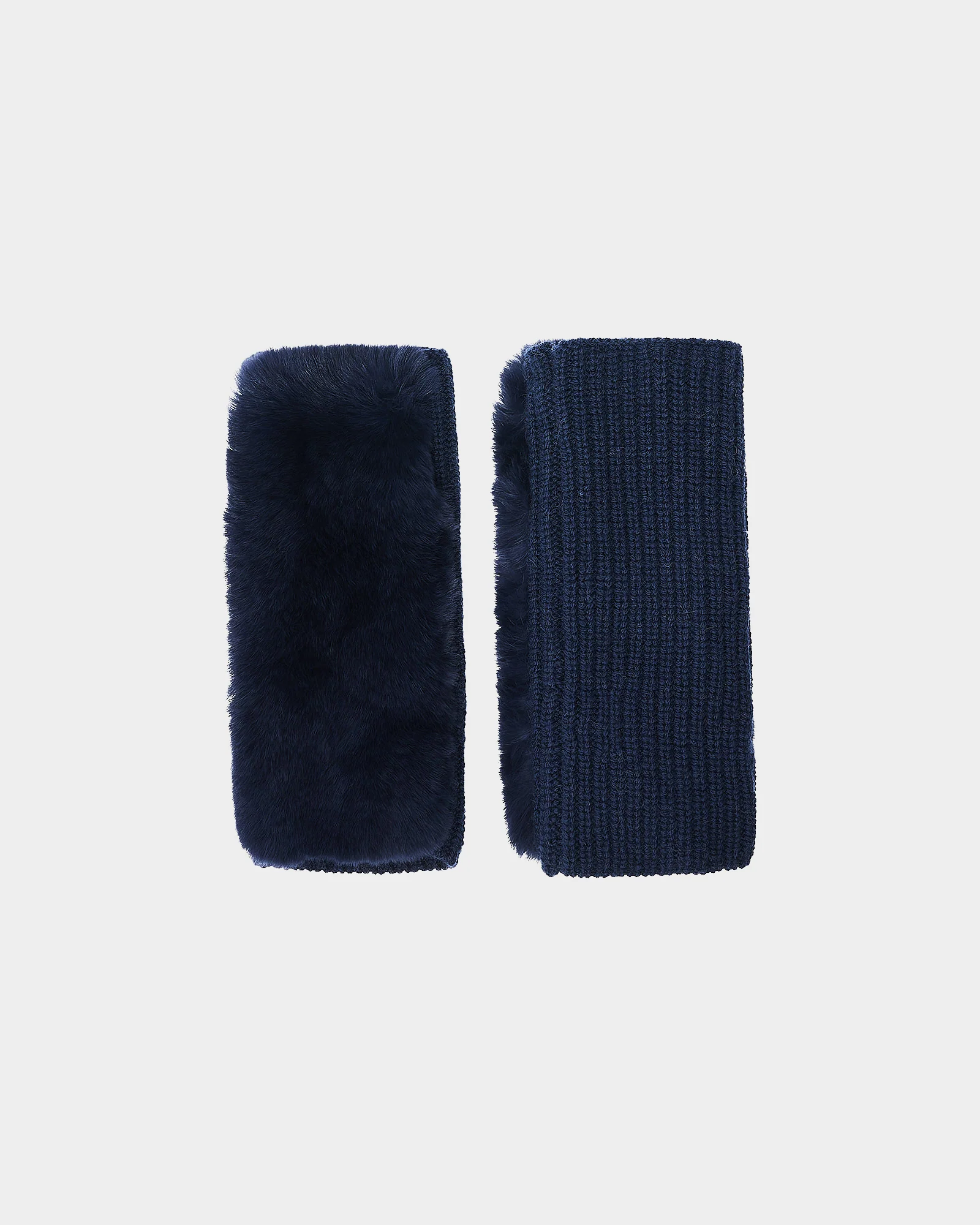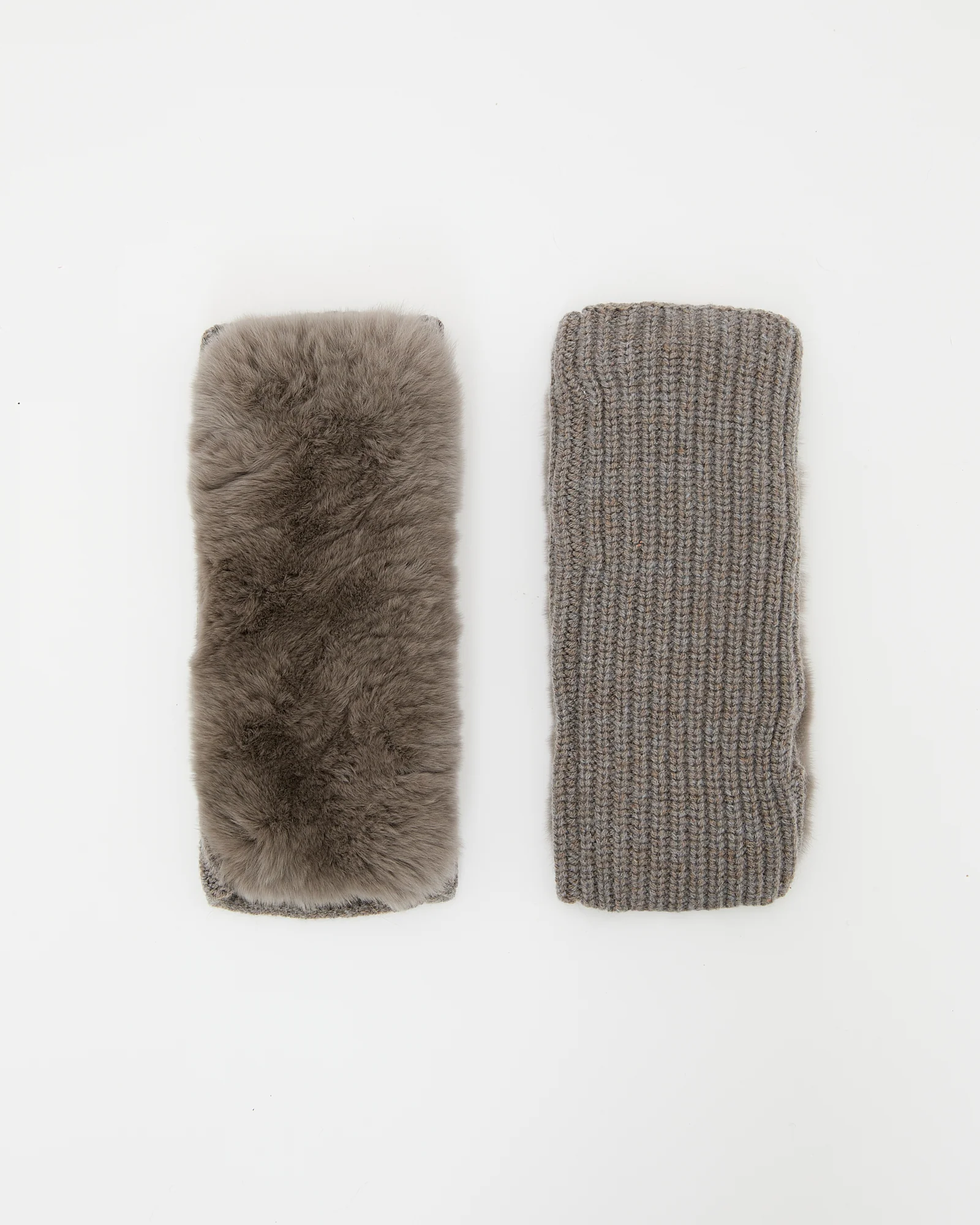 Cashmere wool knit and rex rabbit fingerless gloves