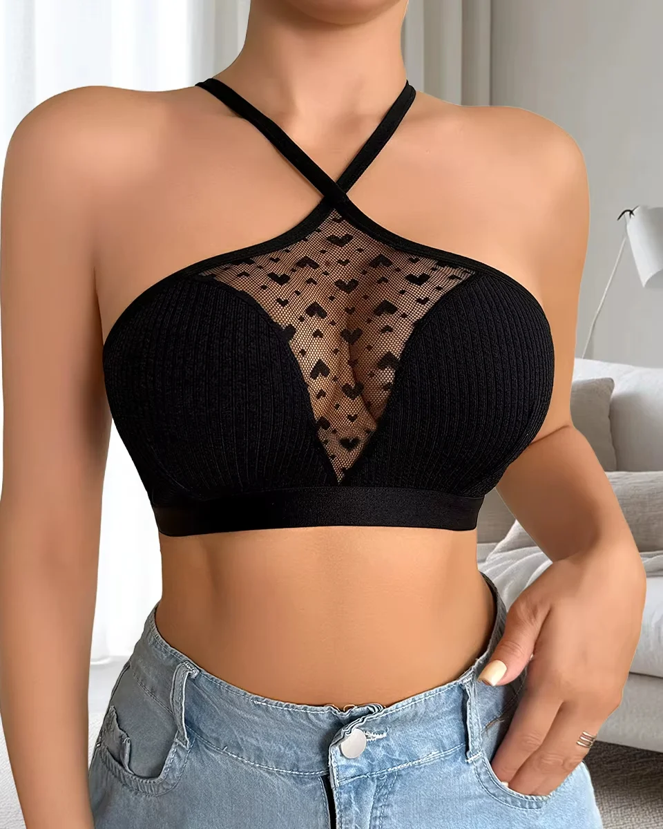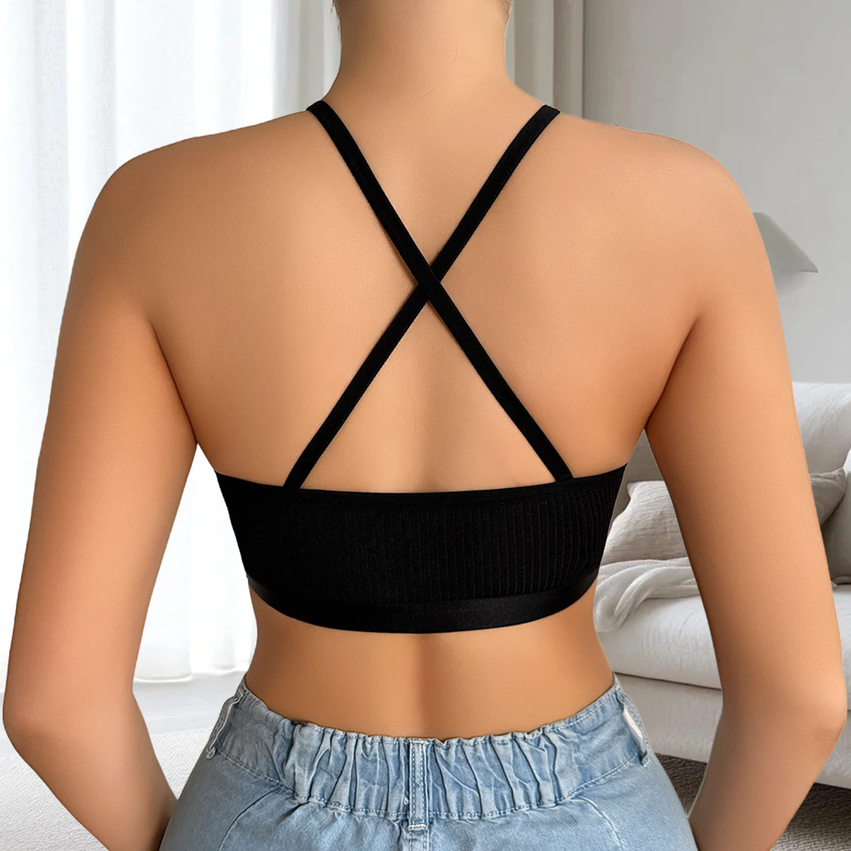 1 pièce côtelé Sexy femmes soutiens-gorge brassière sans fil sans coussinet