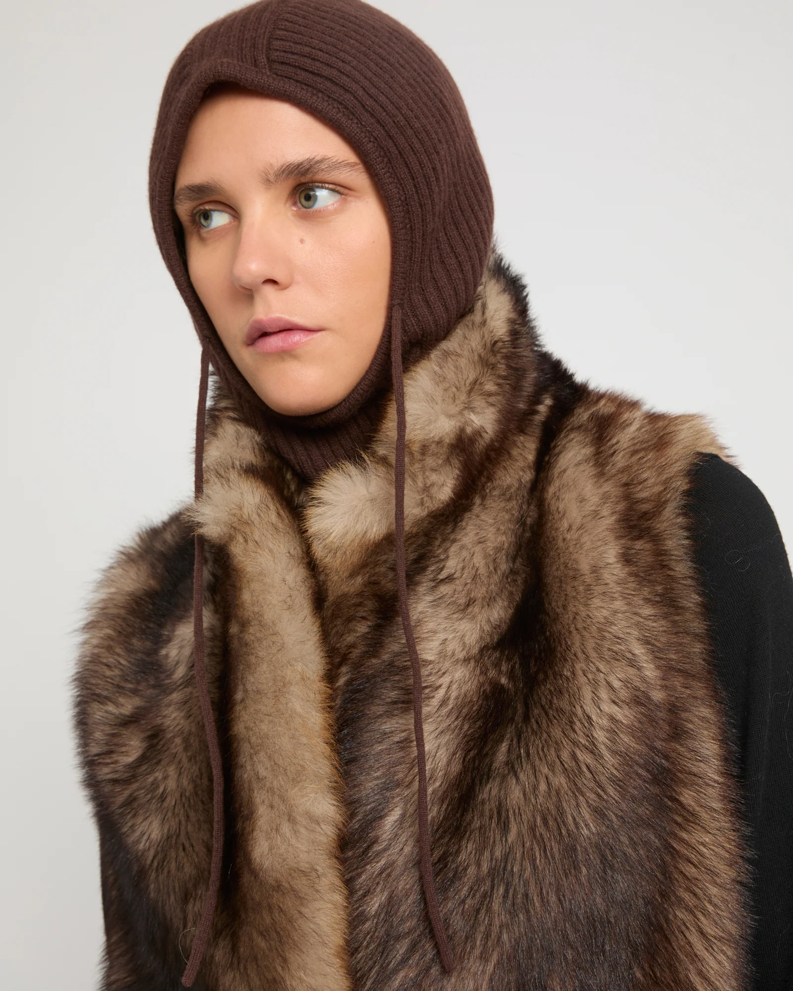 This balaclava in luxurious 100% cashmere knit covers the face and neck for protection against the elements and extra style and softness. A drawstring around the face allows the balaclava to be adjusted, while the long neck can be slipped under the collar of a coat or jacket. – Yves Salomon Collection– Drawstring– Unlined