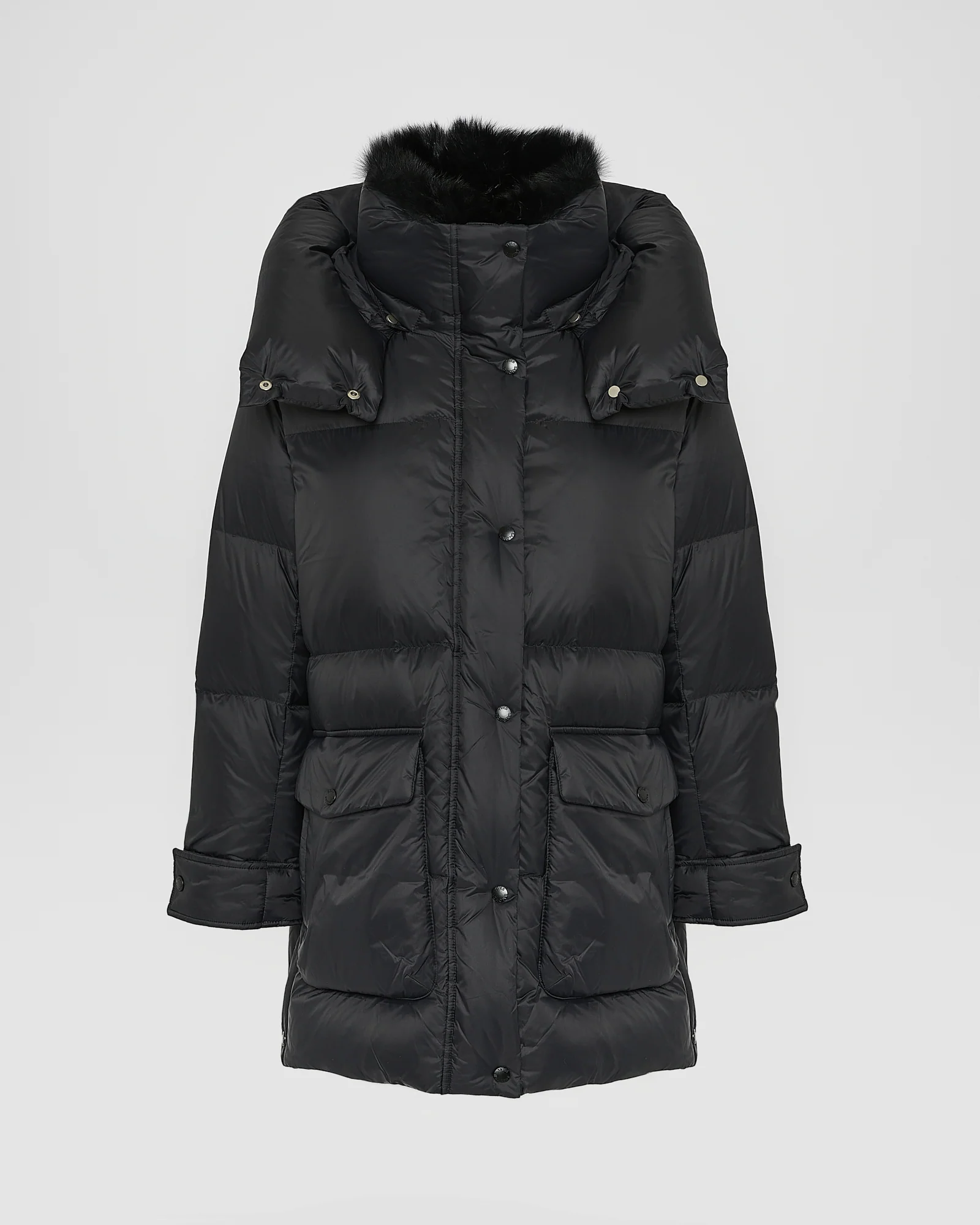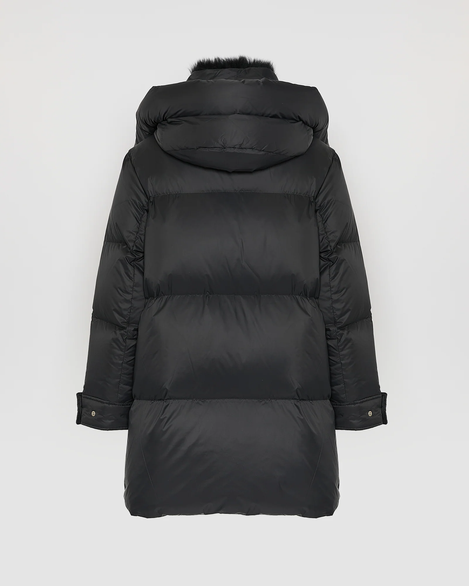 7/8 Long down jacket in water-repellent technical fabric with collar trim in fluffy lambswool