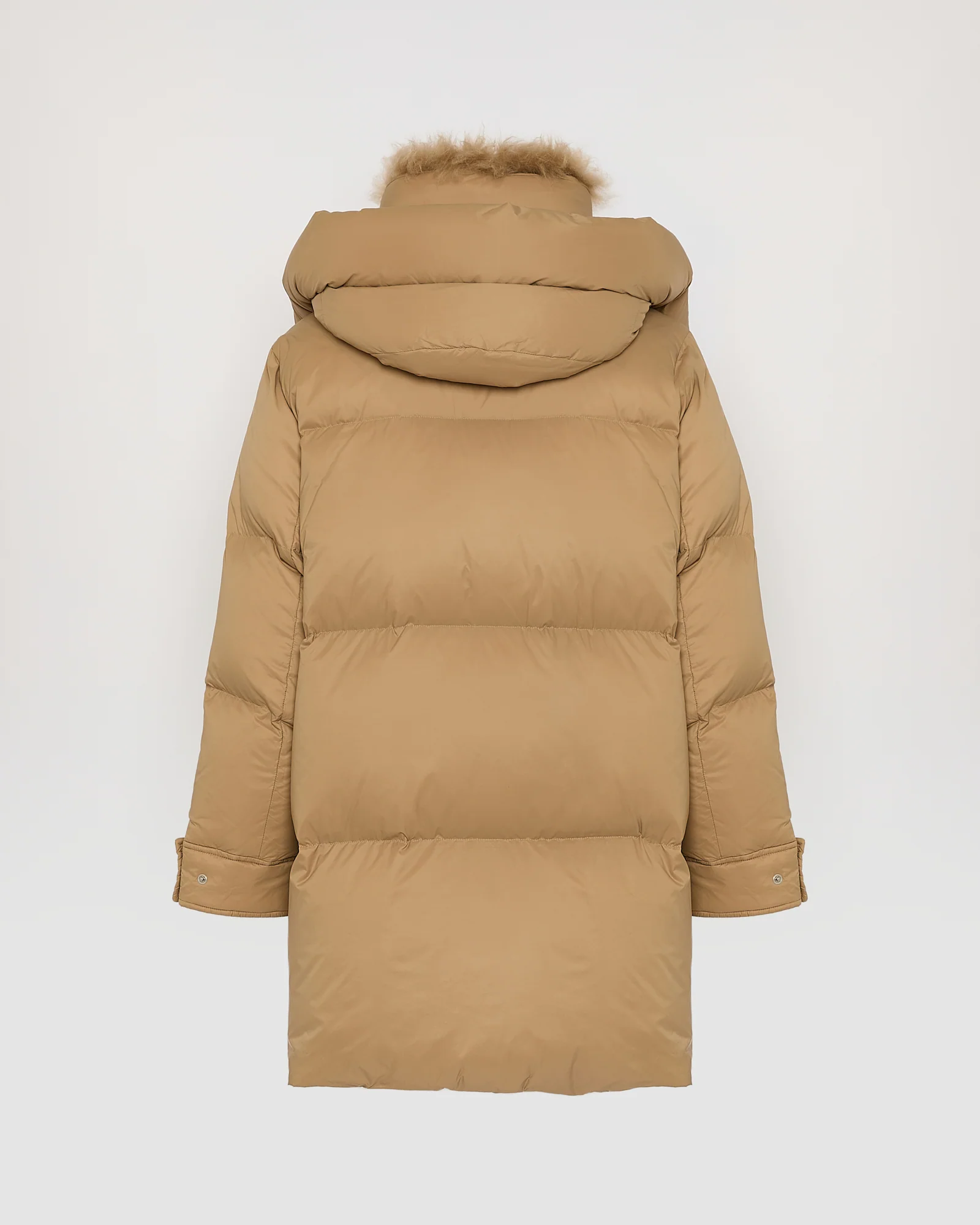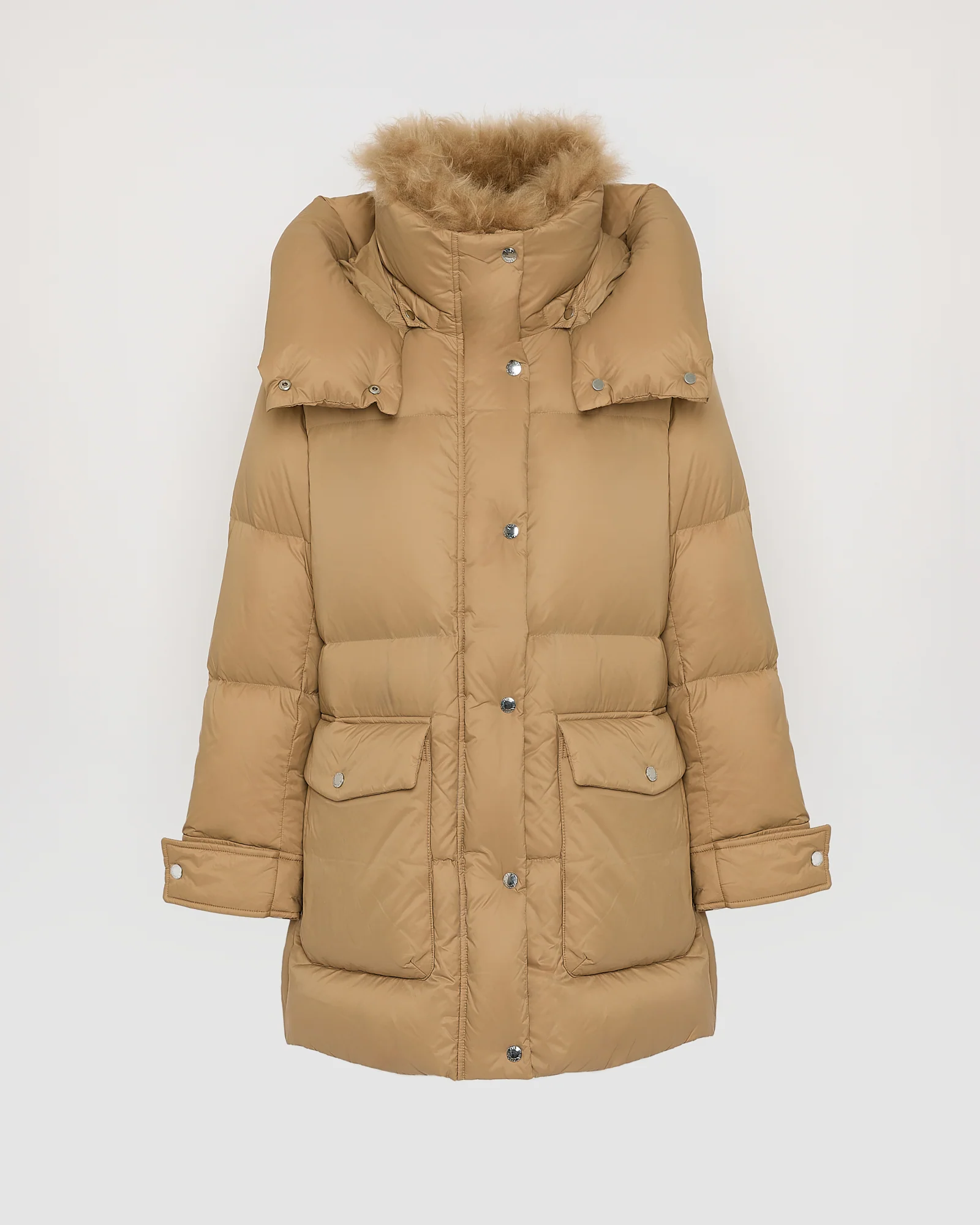 3/4 down jacket in water-repellent technical fabric with fox fur collar trim
