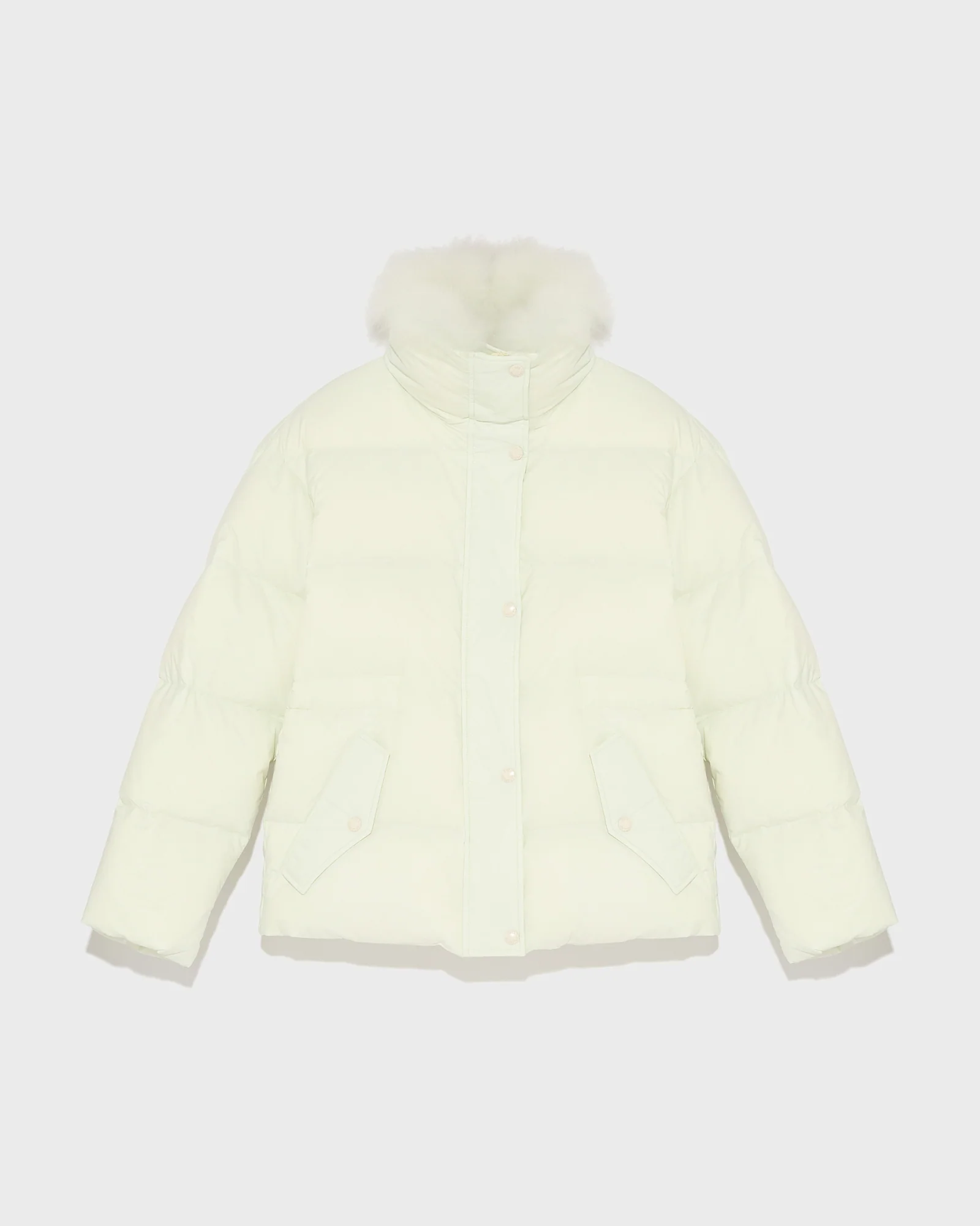 « A » Line puffer jacket in technical fabric with removable mink fur hood bib
