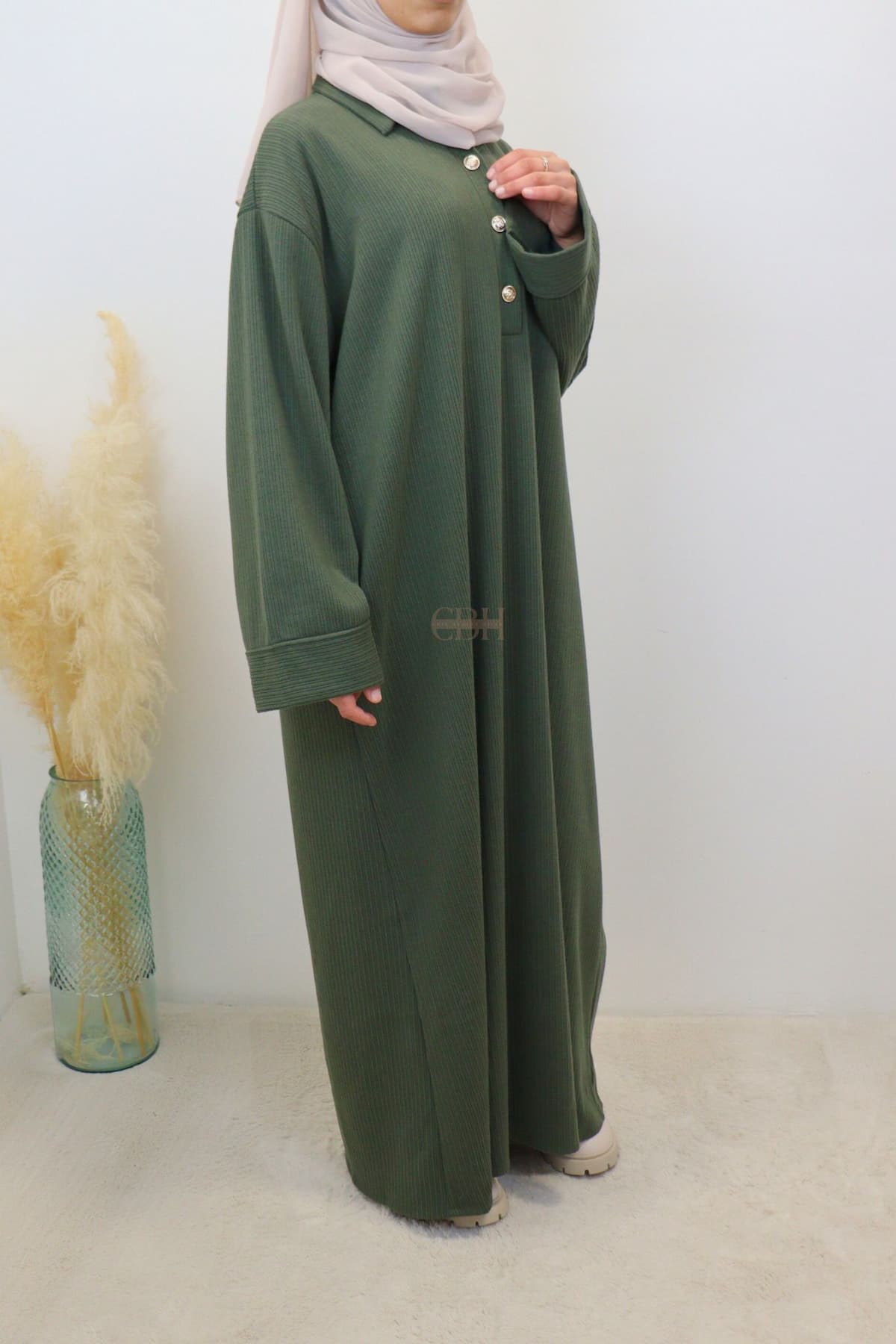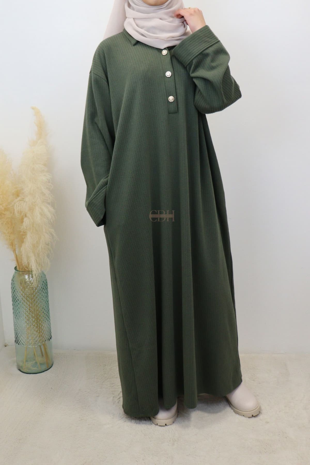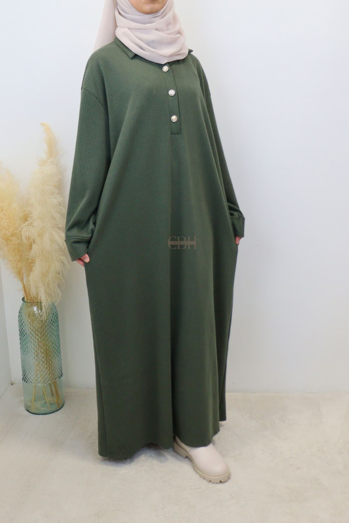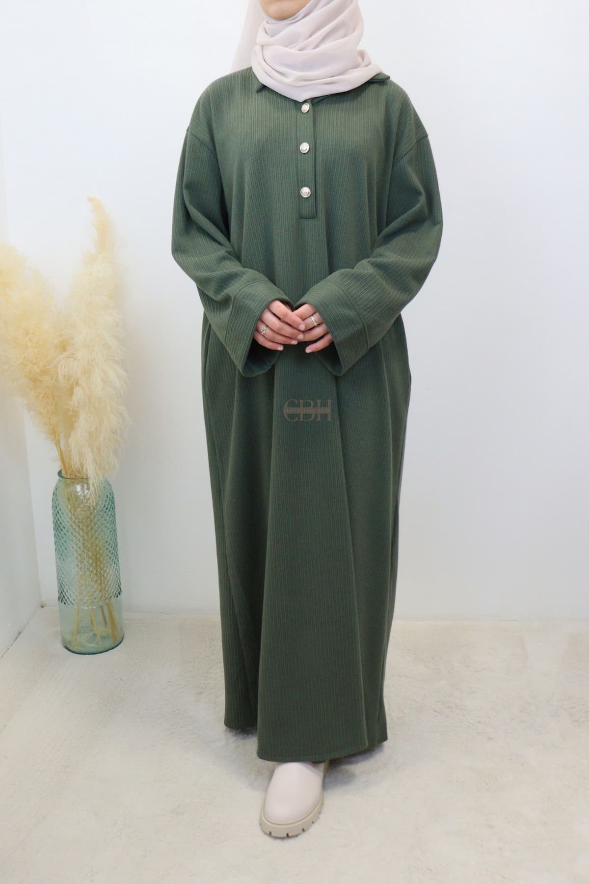 L’abaya en velours Lina kaki offre une élégance chaleureuse et moderne. Sa matière épaisse et douce assure confort et opacité tout au long de la saison.