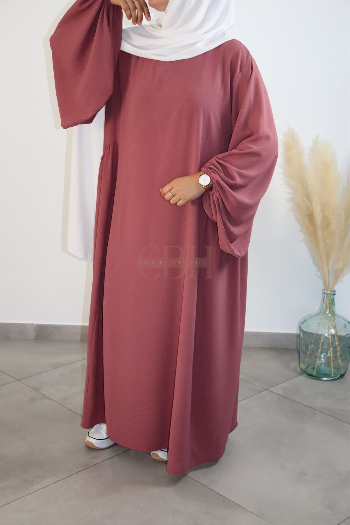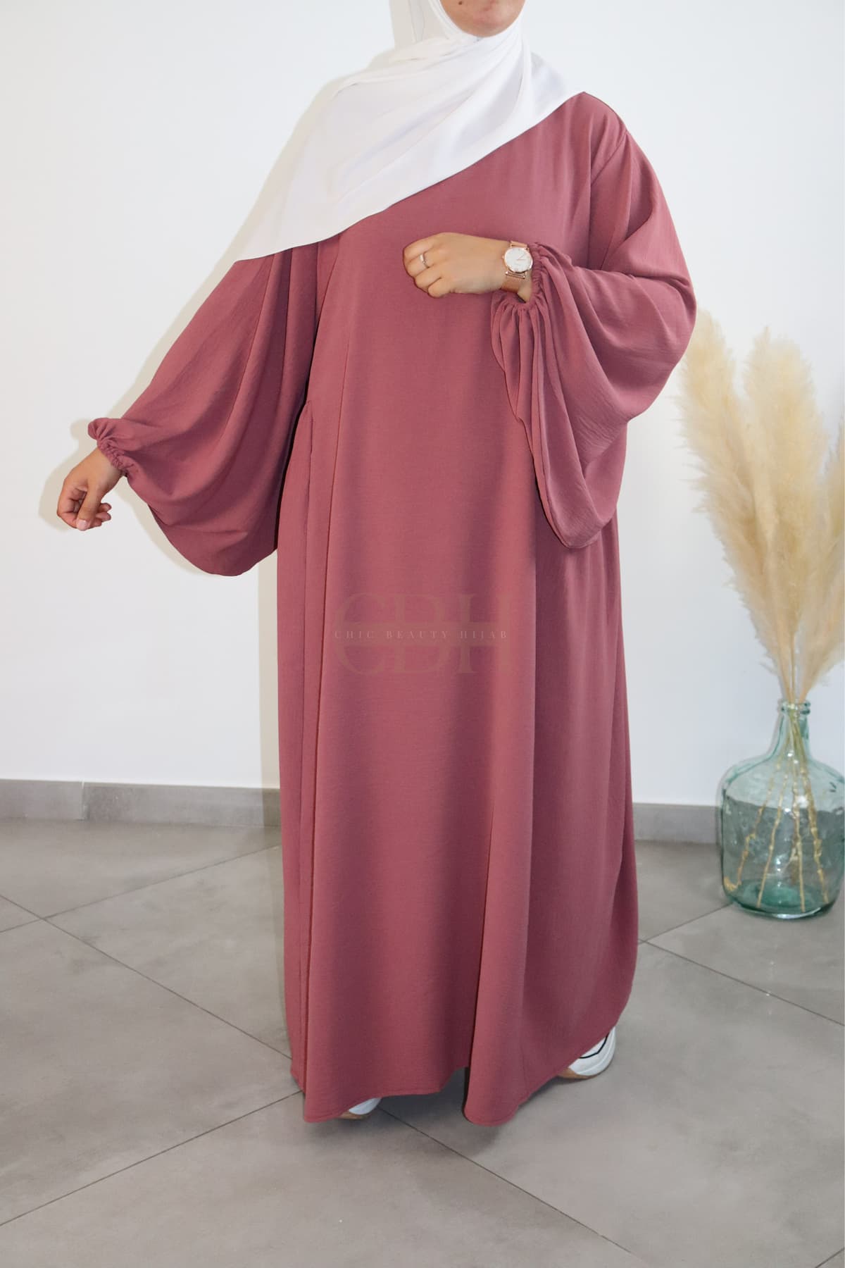 La Abaya Jazz Manches Bouffantes Vieux Rose est conçue dans un tissu fluide de type Jazz idéal pour le quotidien et ultra confortable.