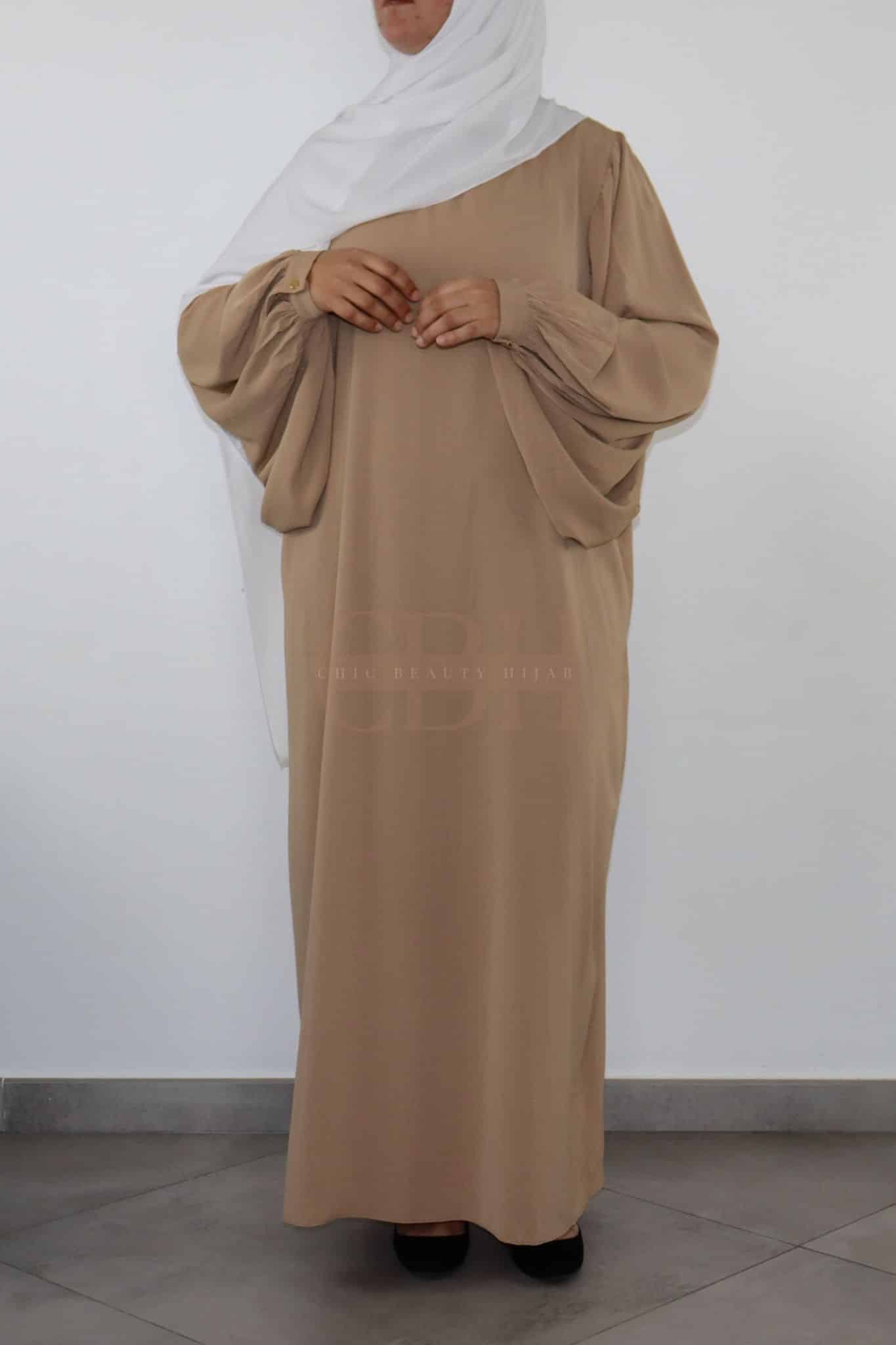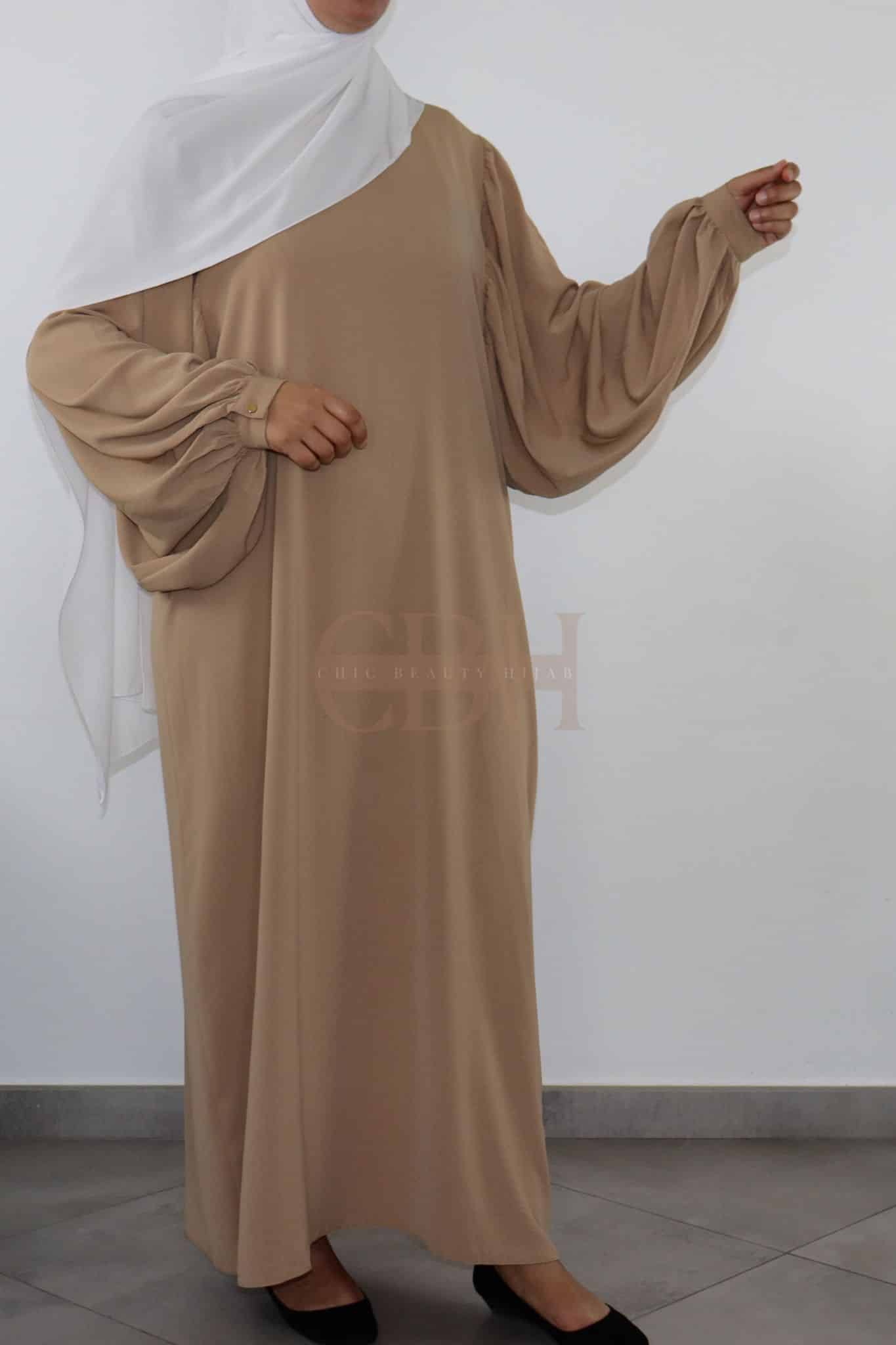 Abaya soie de médine manches bouffantes