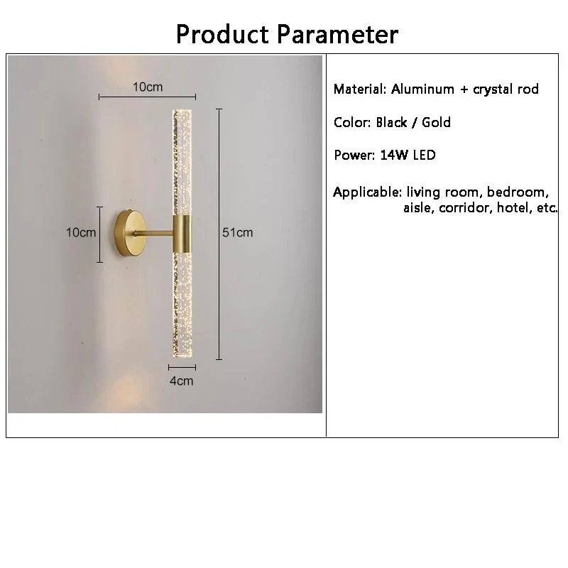 Applique murale LED moderne en cristal Chambre à coucher Chevet Salon Allée Couloir Luminaire d’intérieur