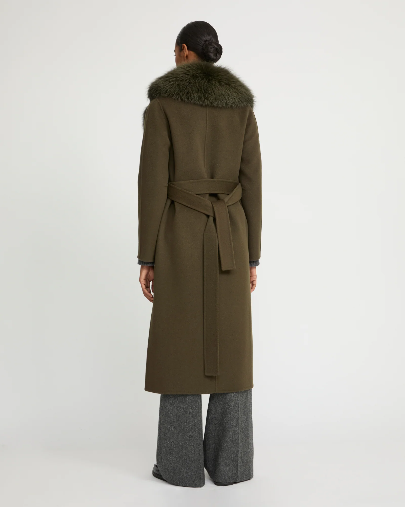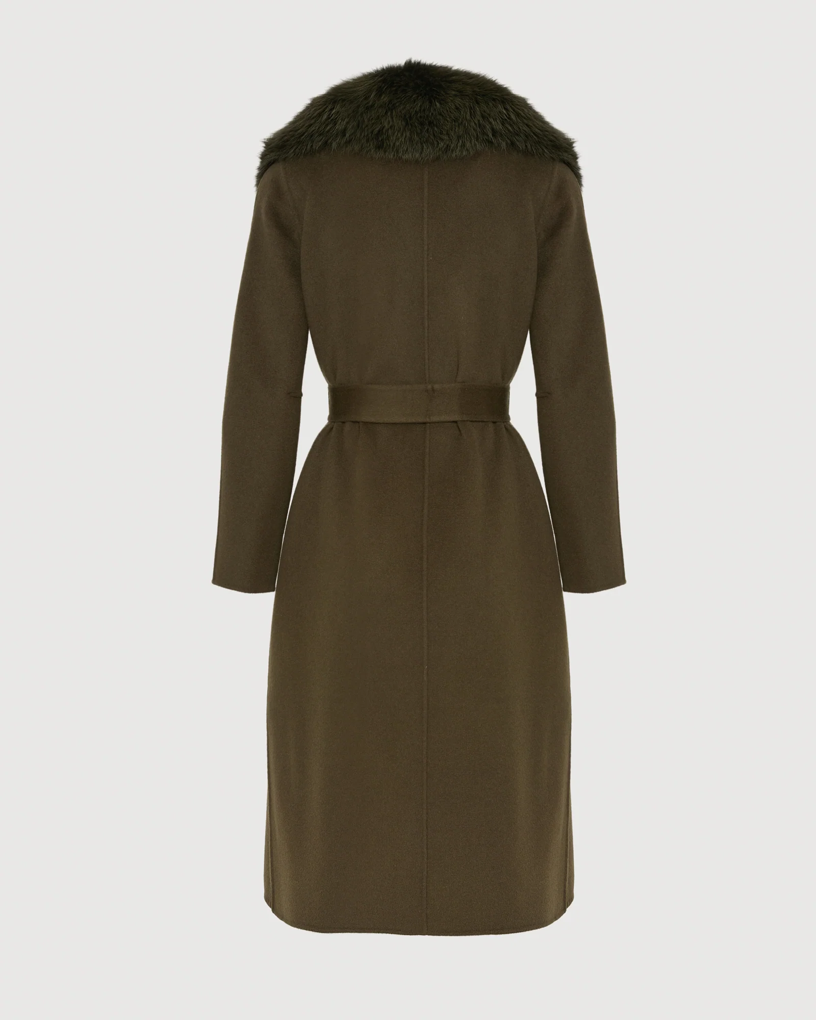 Soyez le premier à laisser votre avis sur “Belted coat in cashmere wool with fox fur collar and lapel”