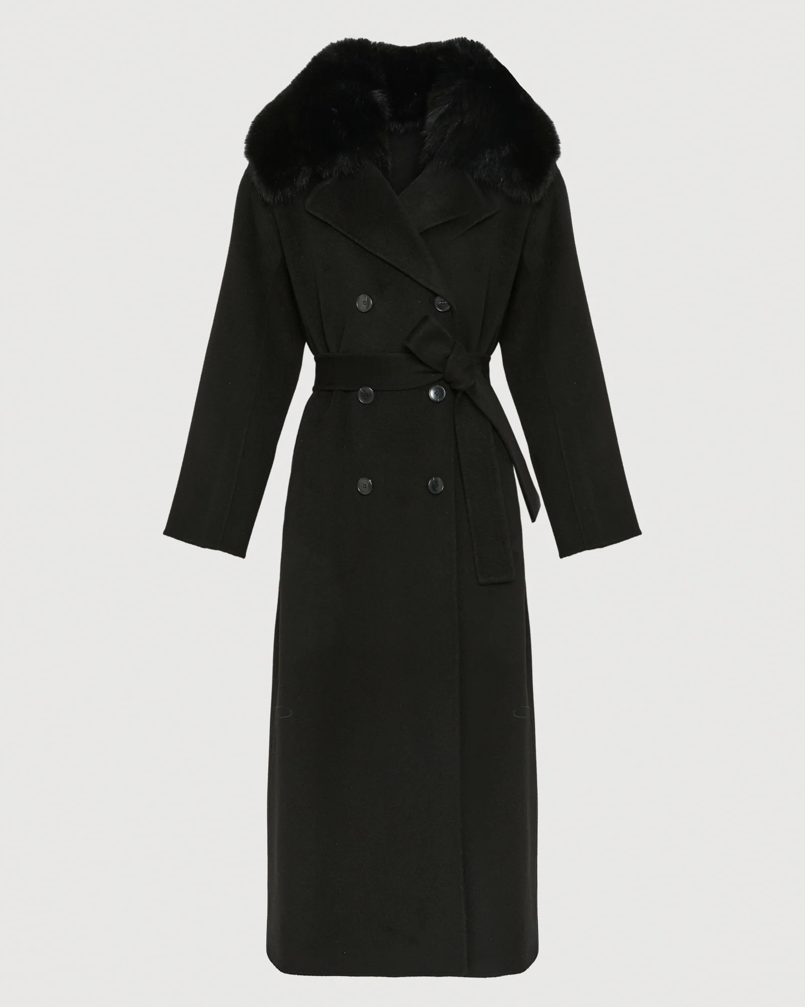 – Removable cashmere wool belt