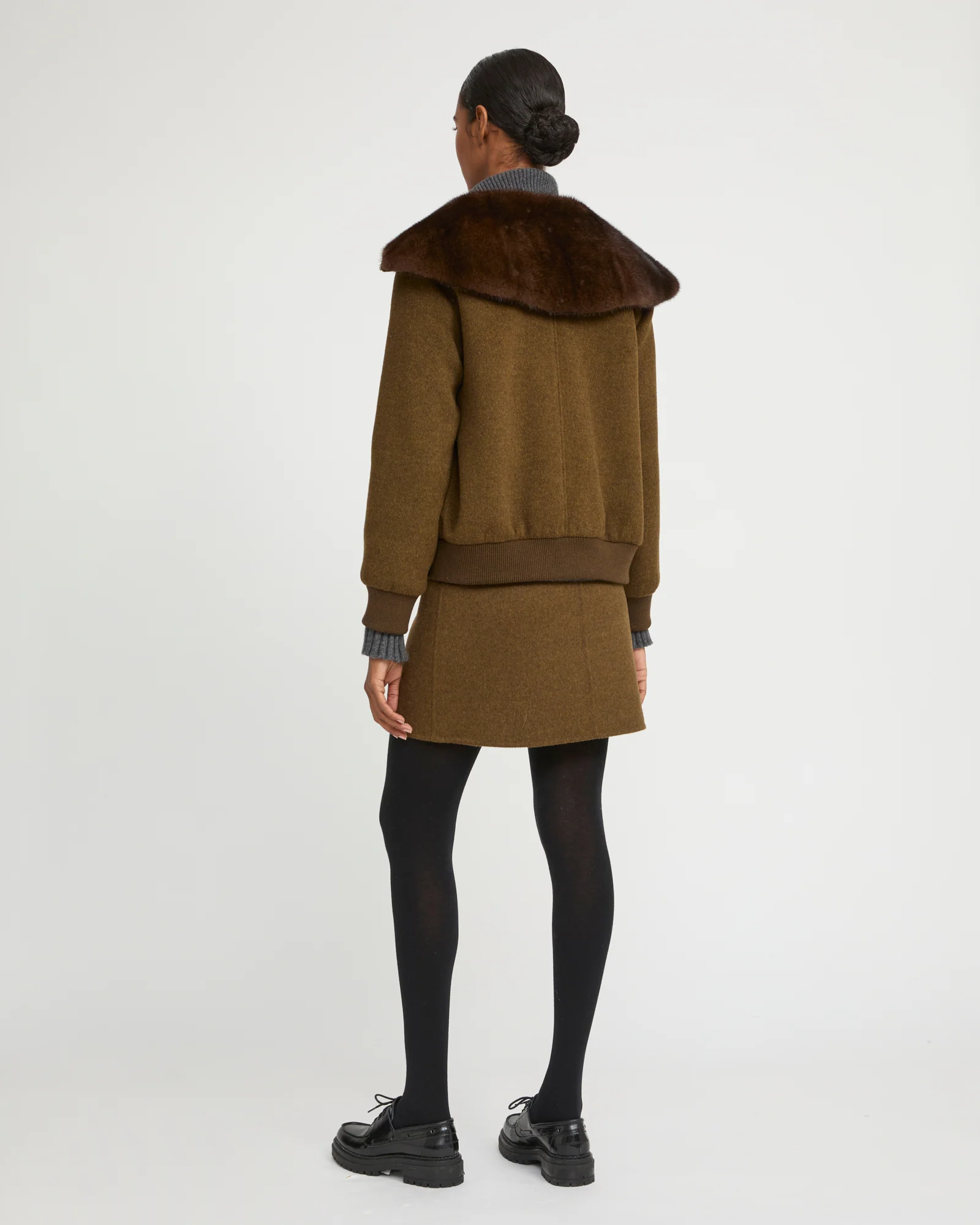 Cashmere-blend cropped blouson with removable mink fur collar