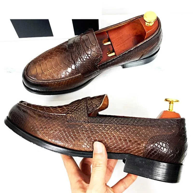Chaussures de luxe en cuir noir pour hommes, mocassins à bascule à café