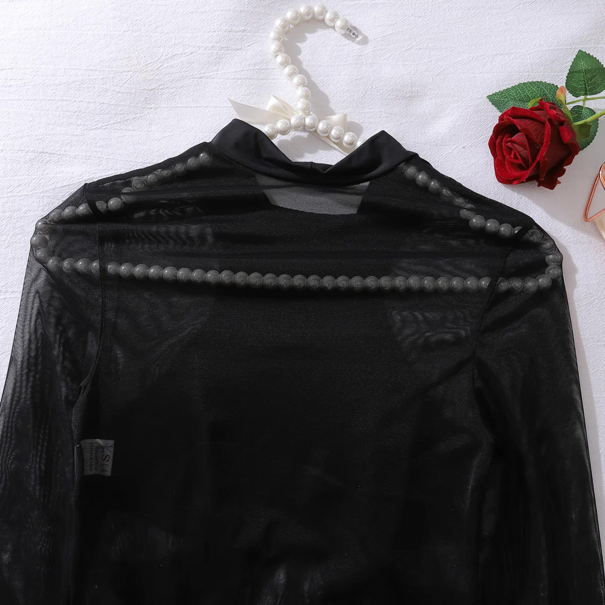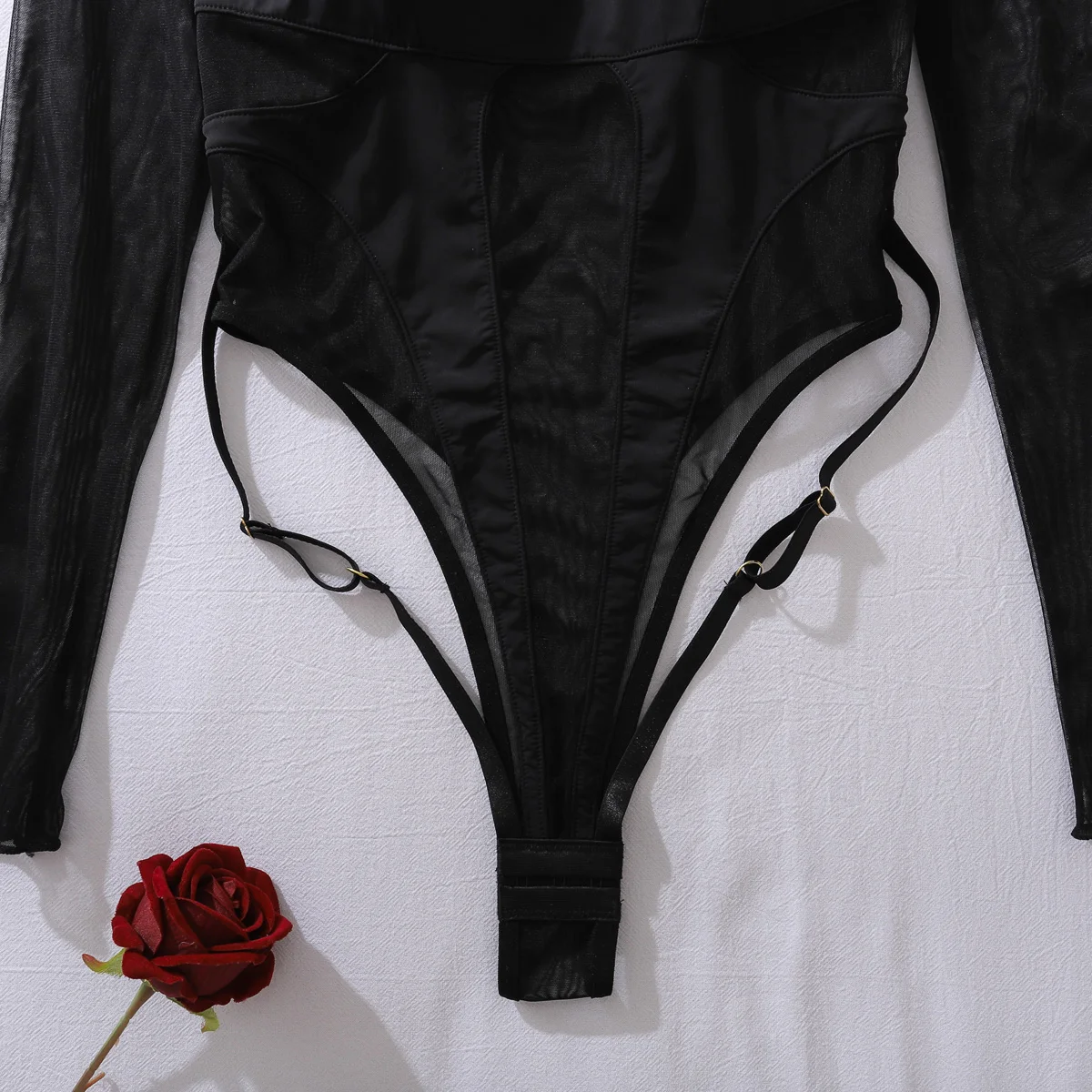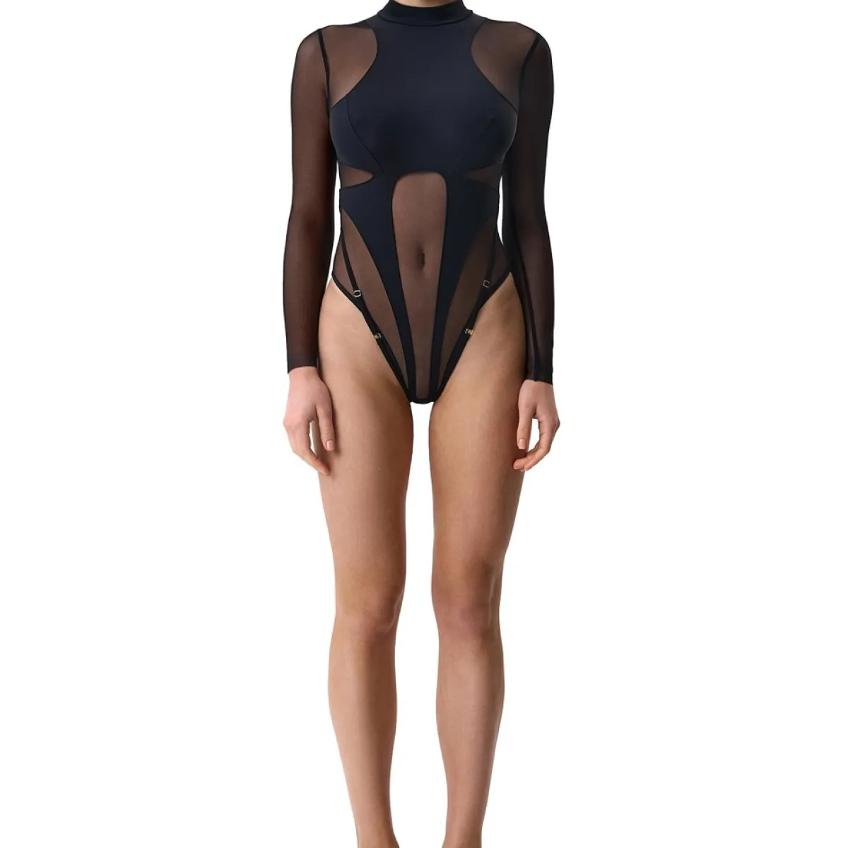 Combinaison en maille ultra-fine transparente, cintrée à la taille