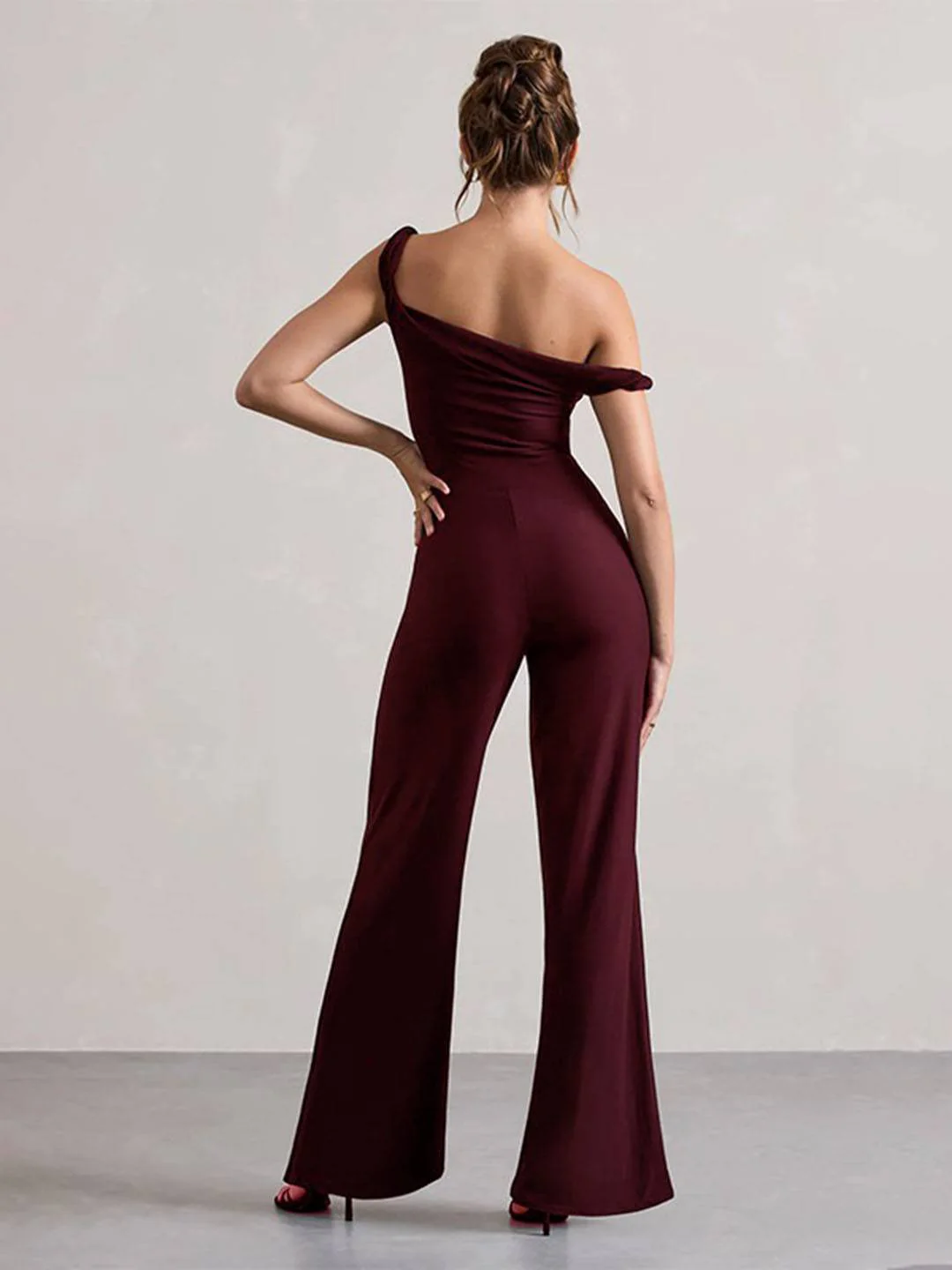 Découvrez l’équilibre parfait entre matière, coupe et fonctionnalité avec combinaisons flare évasé une épaule col bateau sans manches femme élégant décontracté une pièce | KONF.
