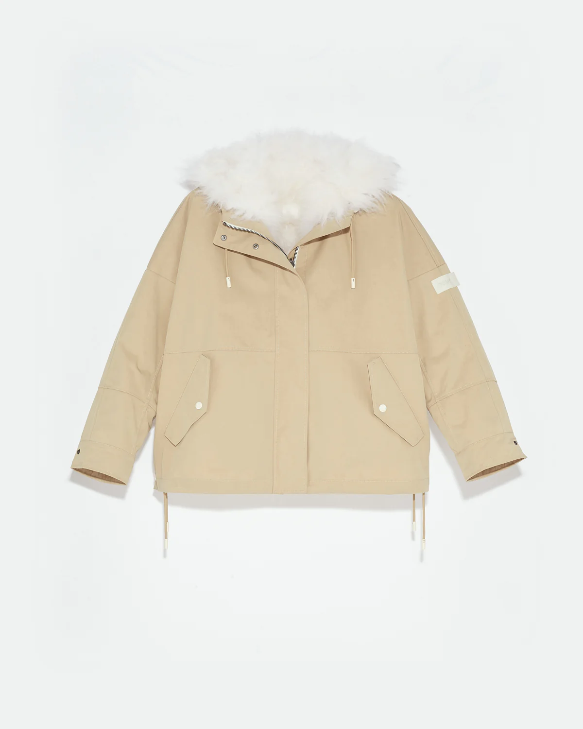 Cropped reversible parka in weather-resistant technical fabric and fluffy lambswool