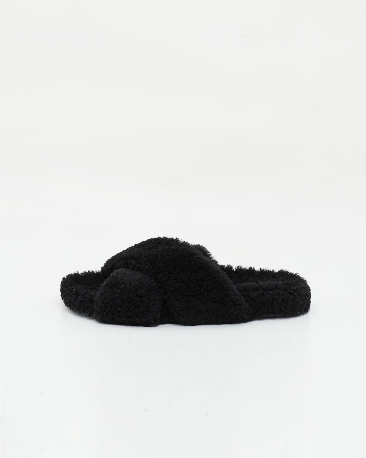 Somewhere between slippers and sandals, these mules crafted from curly merino wool combine comfort with elegance. Featuring an interlaced shape and a pared-back design, these flat shoes ensure a resolutely modern look from day to night.