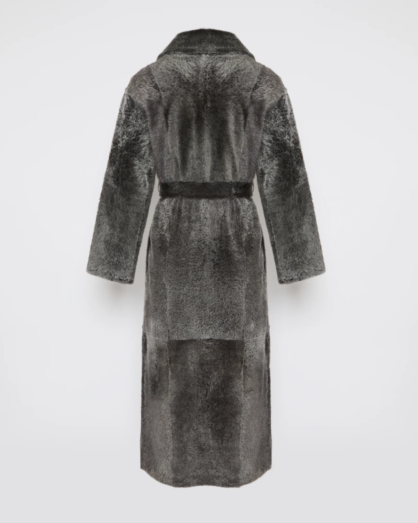 A military-inspired shape and an astrakhan texture for this long coat in lamb shearling with a wide collar and double-breasted front. A removable belt allows the shape to be cinched.
