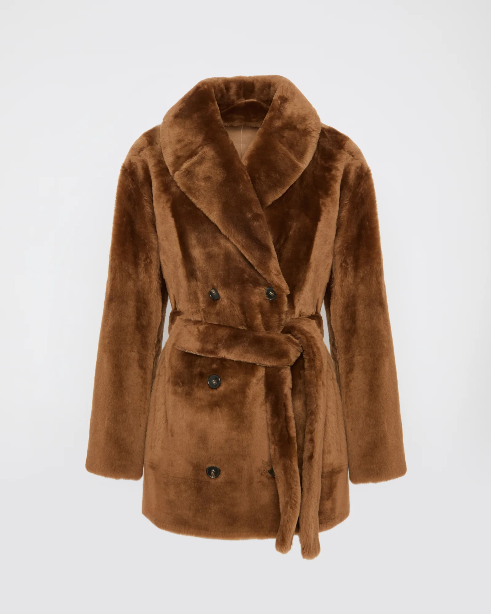 Belted shearling coat