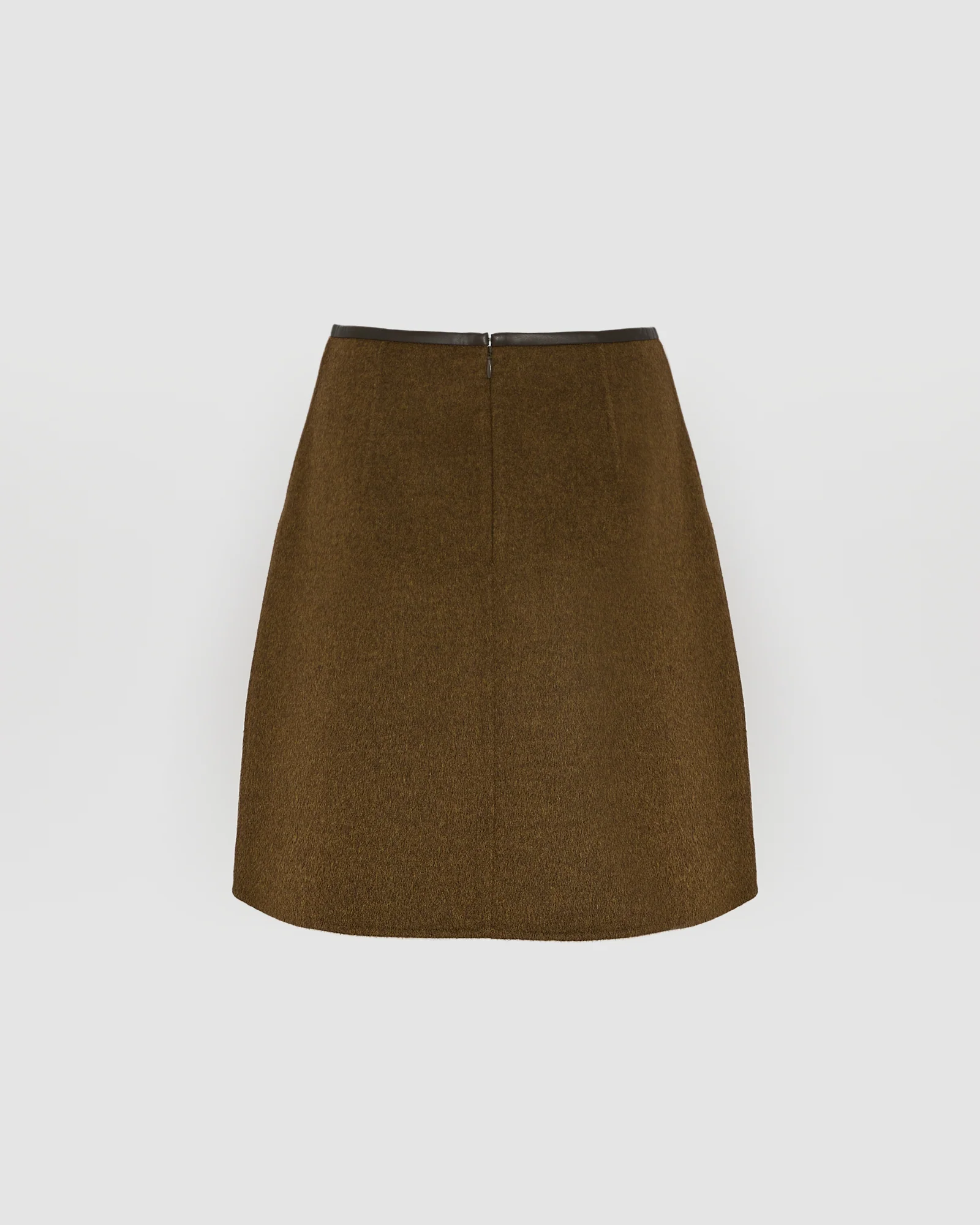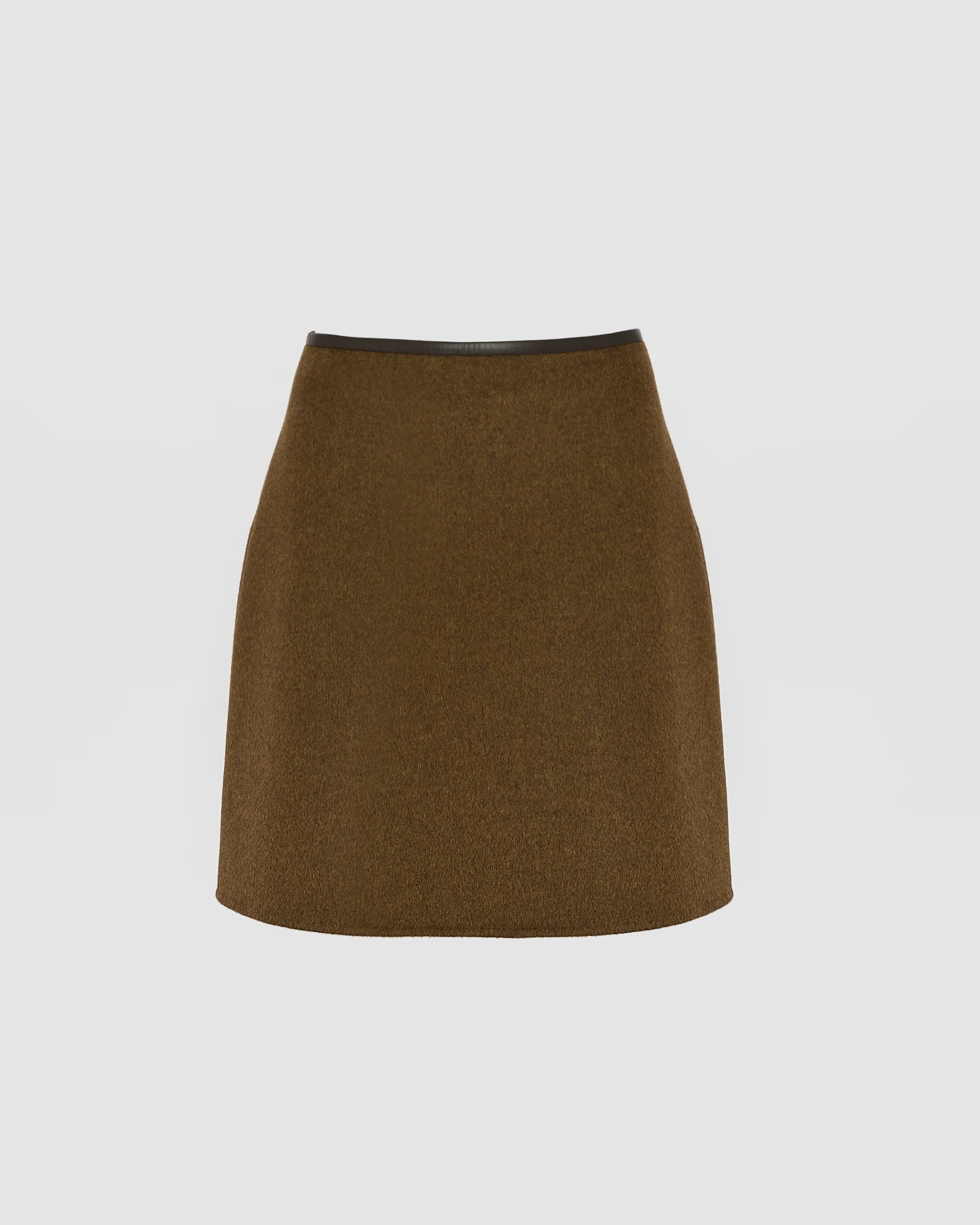 Worked in a double-sided cashmere-blend, this short A-line skirt reveals the legs with its elegant shape. Trimmed with leather at the waist, it closes at the back with a concealed zip.