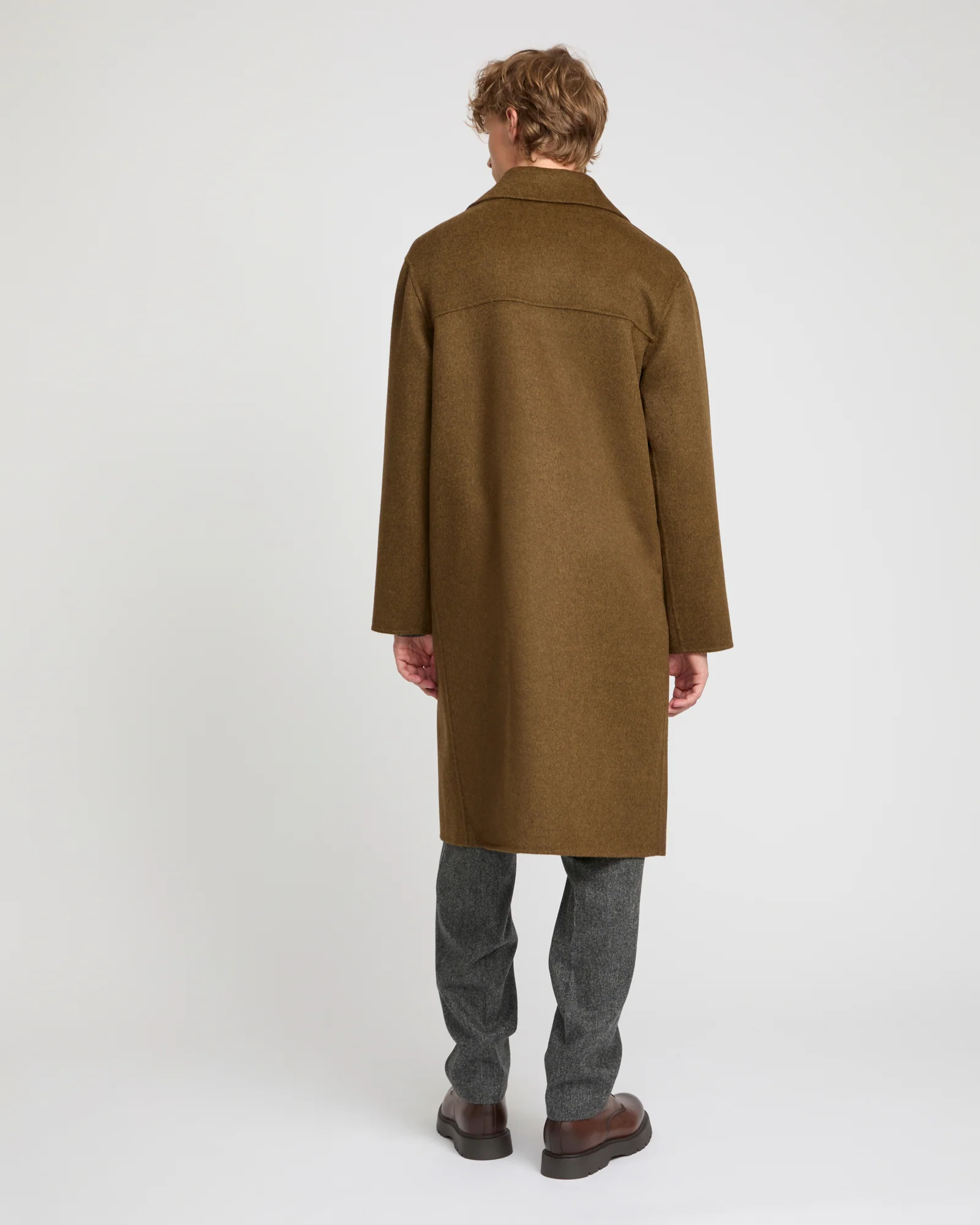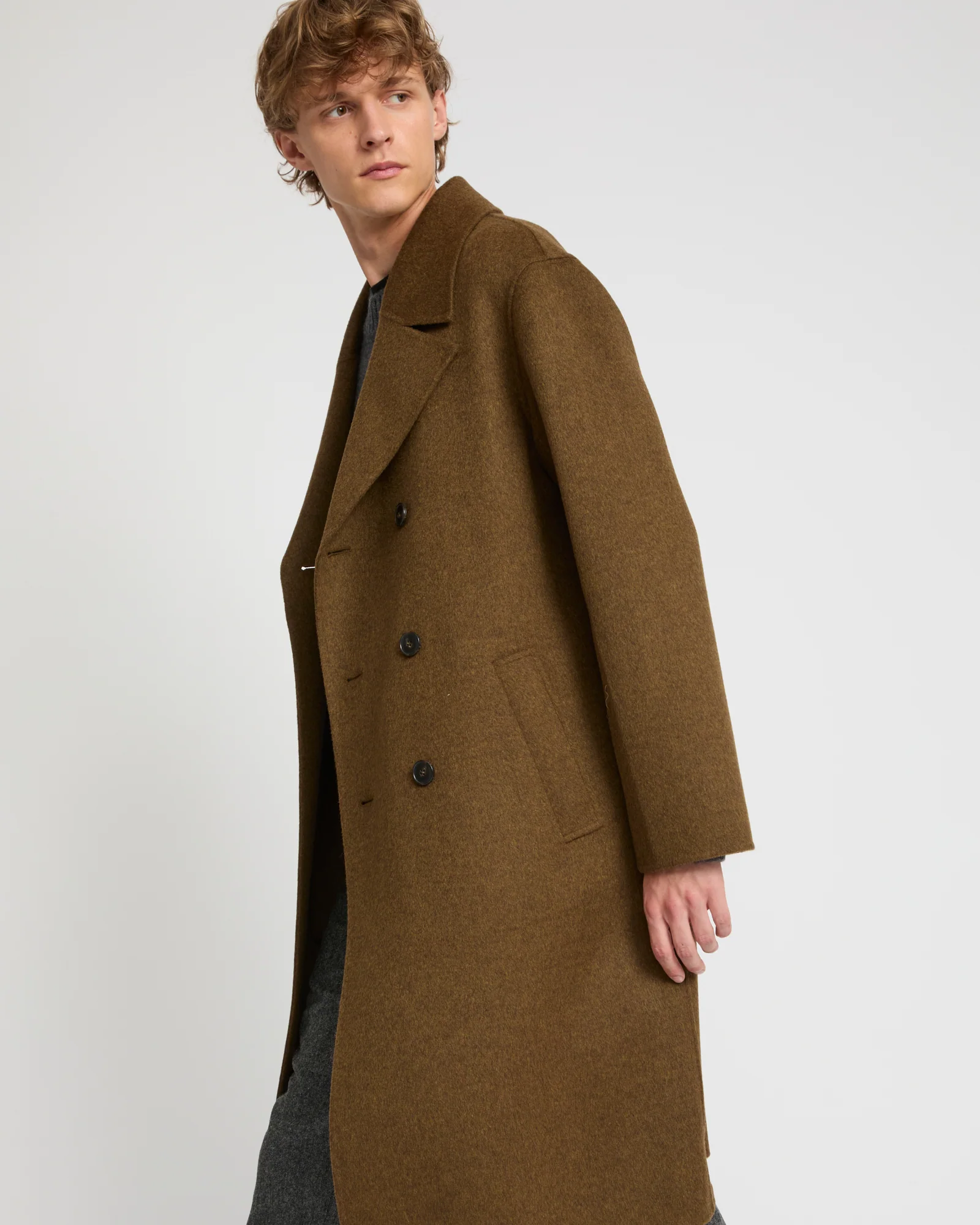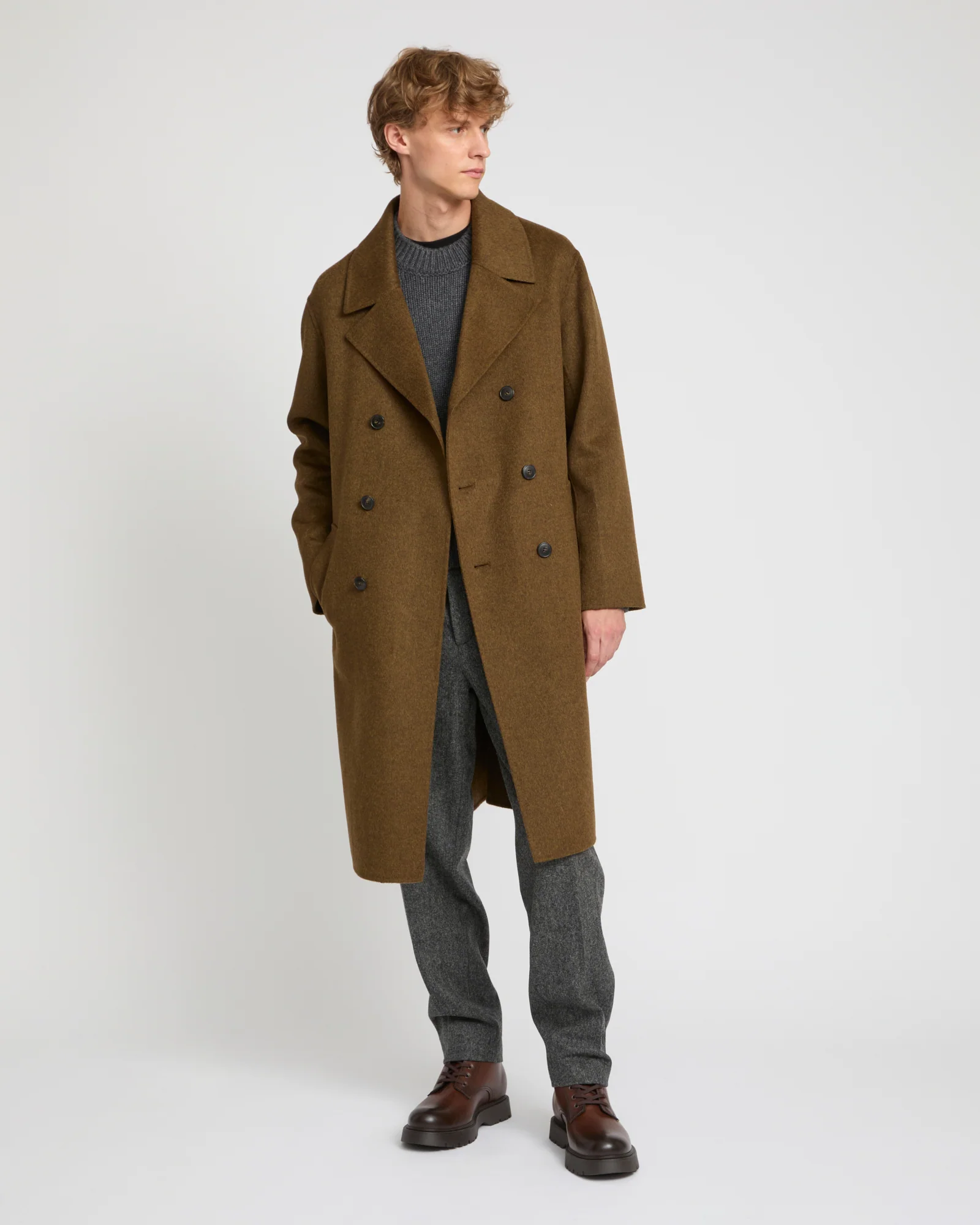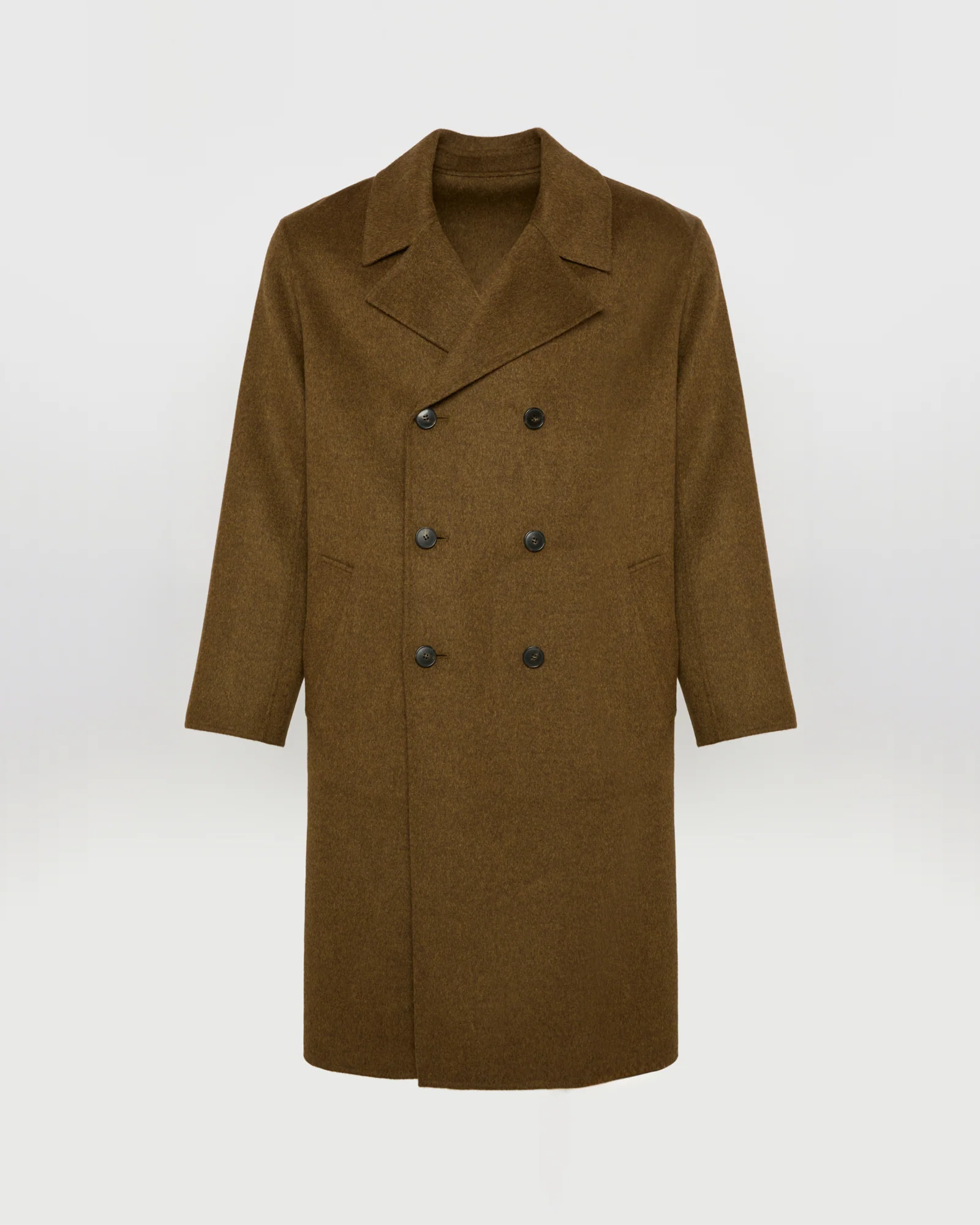 This elegant long design looks to the pea coat for its stylistic inspiration, reworked in a double-sided wool/cashmere mix fabric. Its double-breasted front fastening hides a quilted inner lining for added warmth. Its timeless style amakes this must-have piece a staple of the masculine wardrobe and provides instant chic for the wearer.