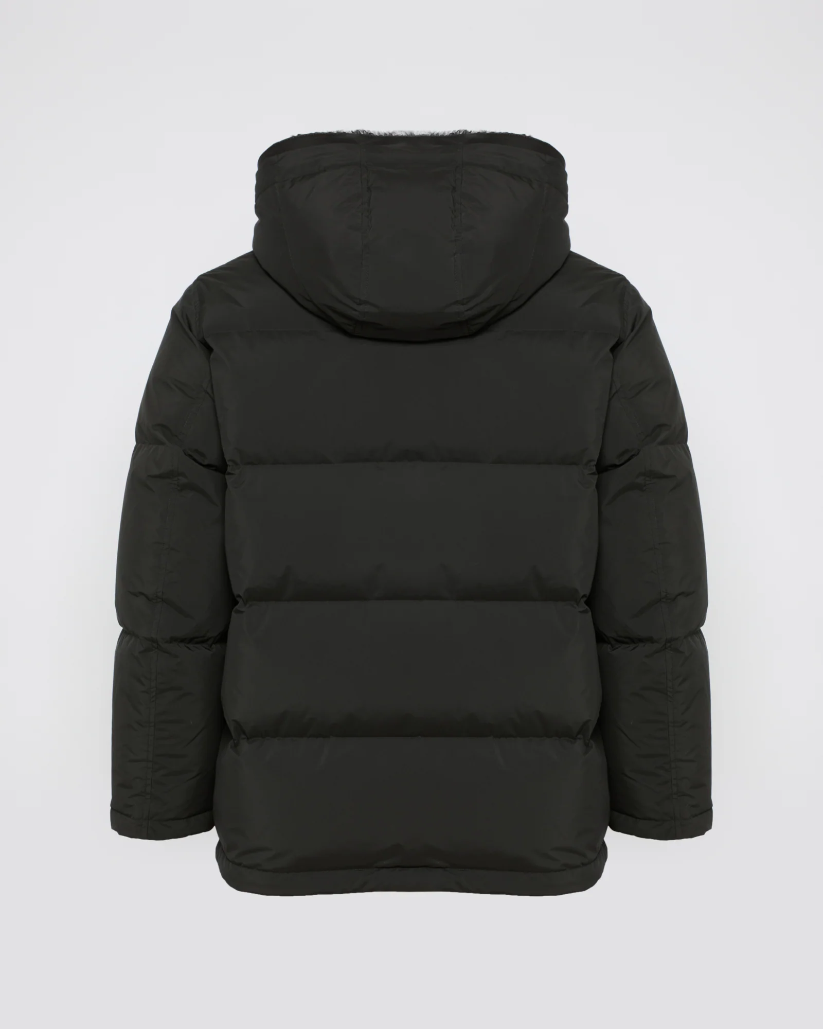 This its parka shape, this down jacket in technical fabric offers a sporty, elegant silhouette. The coat has been tested to a temperature of -10°C to ensure the insulating properties of its high quality down. An inner hood lining in softest Merino shearling provides a versatile styling element.