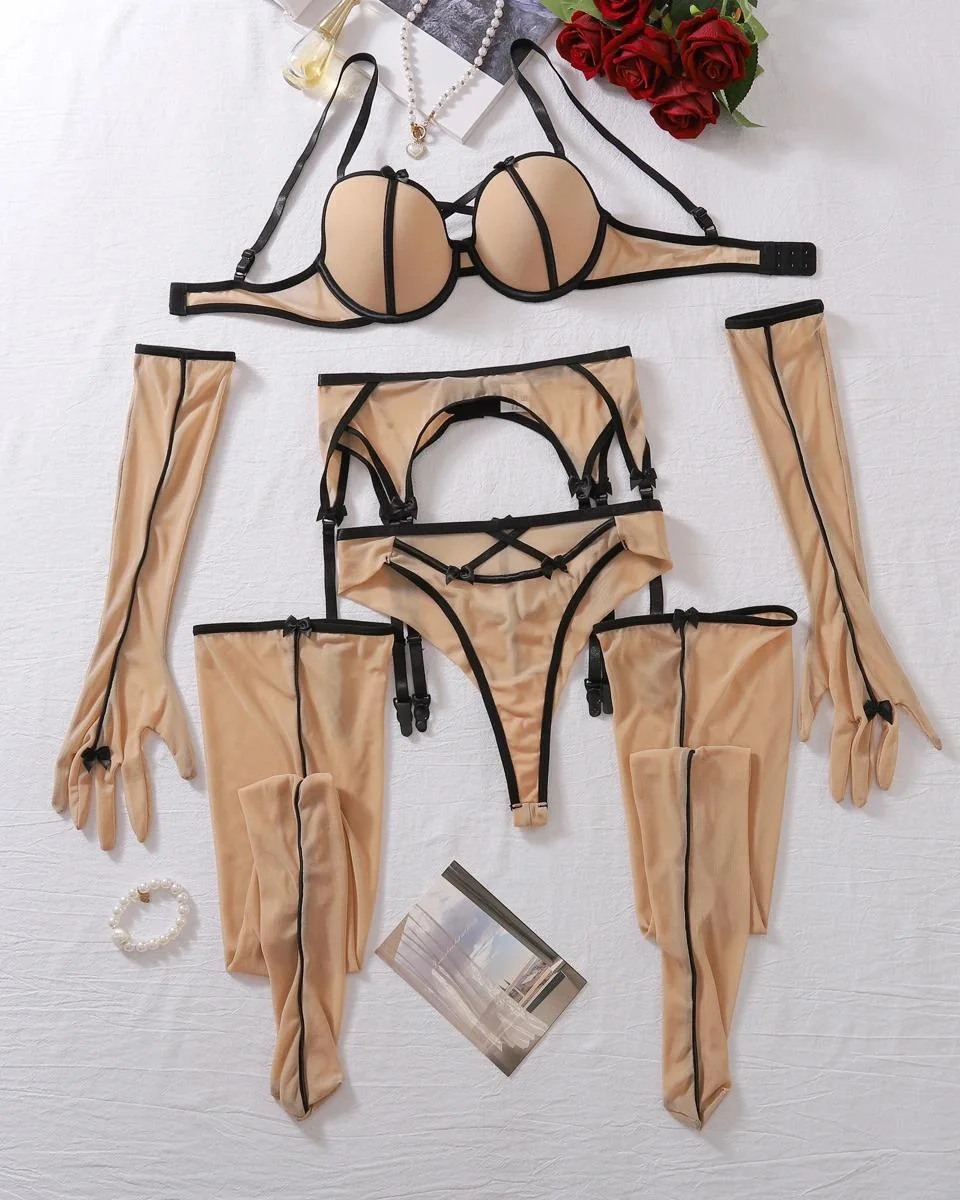 Ensemble de lingerie de luxe pour femmes, en maille transparente, 5 pièces, 7.0