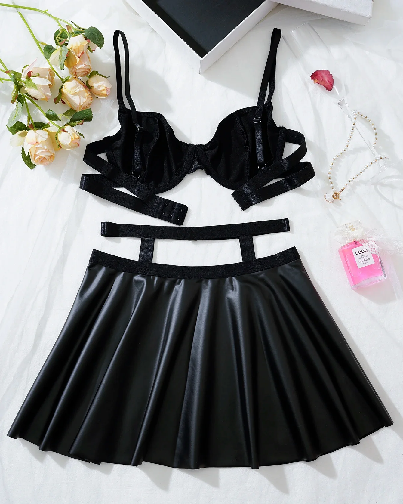 Ensemble soutien-gorge et jupe Sexy pour femmes, nouvelle mode, bretelles réglables en cuir