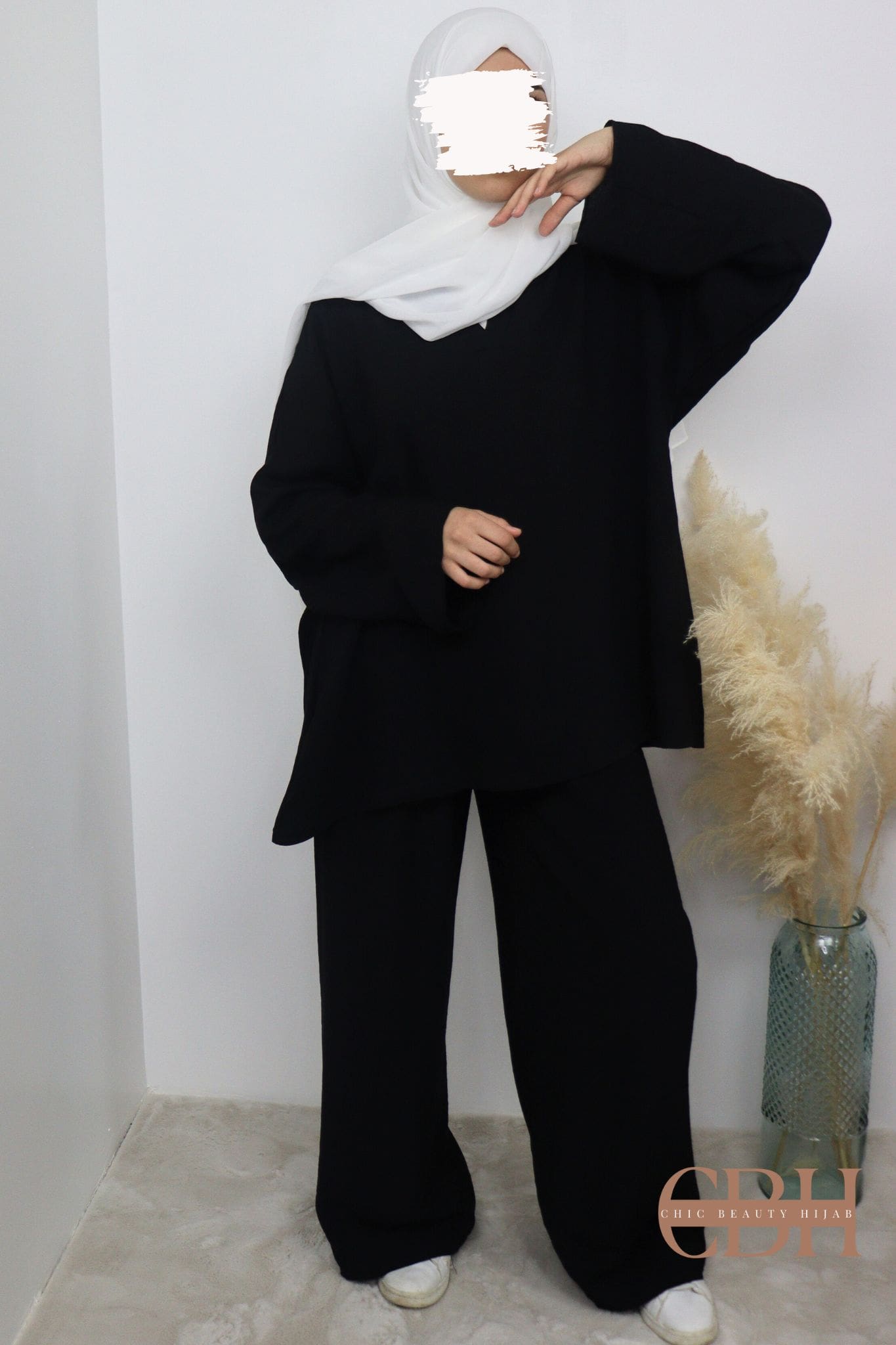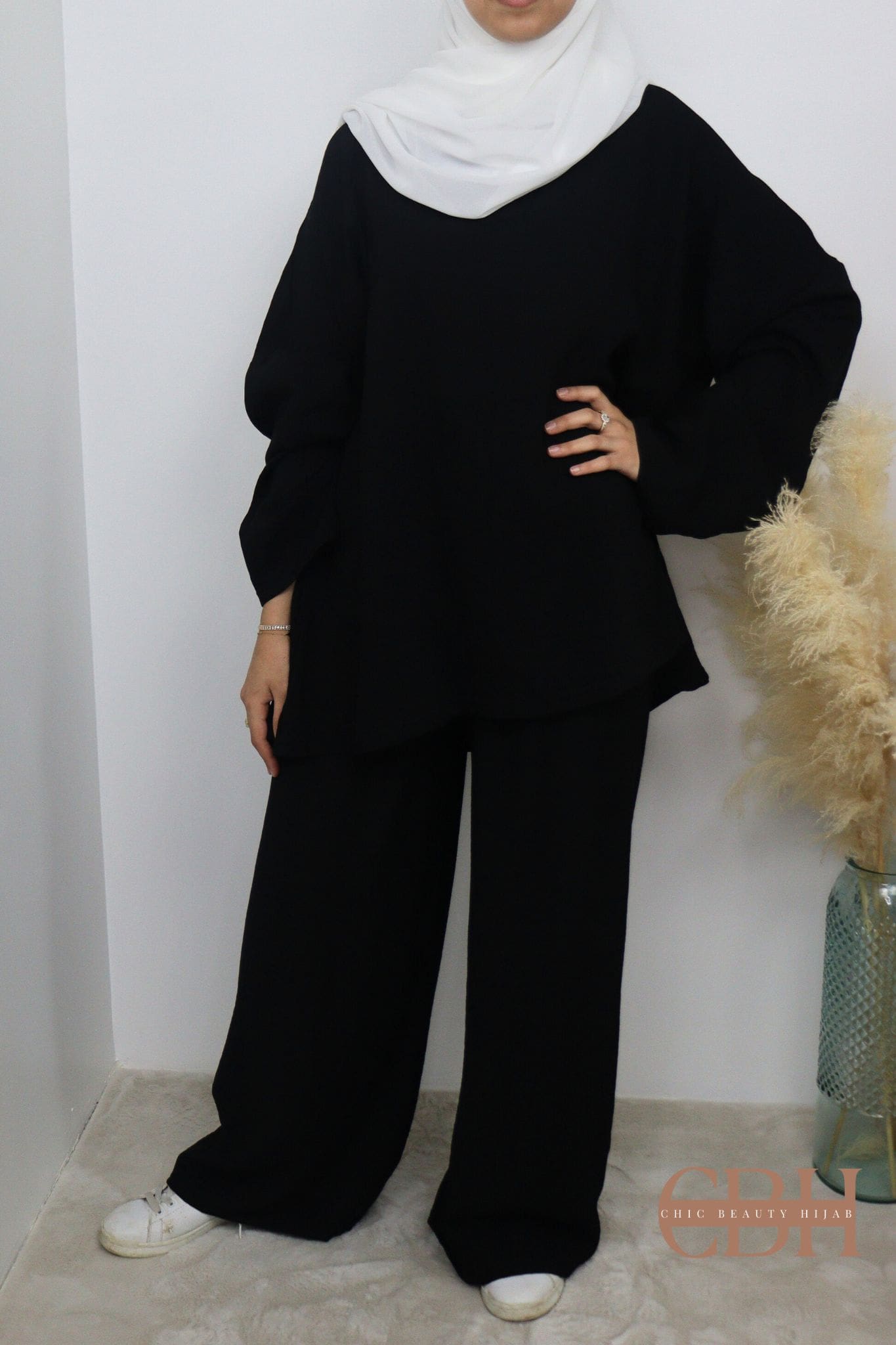 Ensemble tunique palazzo lin noir Cet ensemble tunique palazzo lin léger offre une combinaison parfaite de style, de confort et de respect des exigences vestimentaires. C’est un must have dans votre dressing Modest fashion! Conçu pour répondre aux besoins des femmes musulmanes tout en offrant une esthétique moderne, cet ensemble tunique palazzo lin est un […]