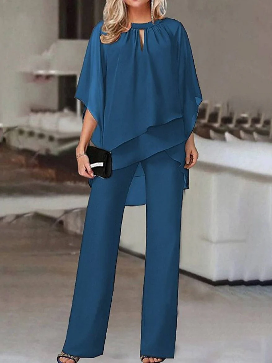 Découvrez l’équilibre parfait entre matière, coupe et fonctionnalité avec Cocolii ensembles deux pièces col rond manches chauve souris hauts irrégulière droit pantalon femme lâche décontracté de mariage | KONF.