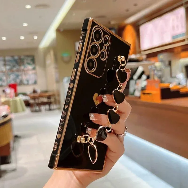 Étui en silicone plaqué avec bracelet coeur d’amour