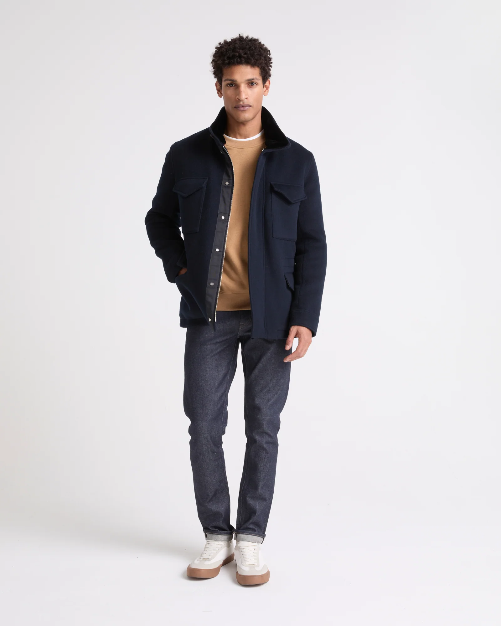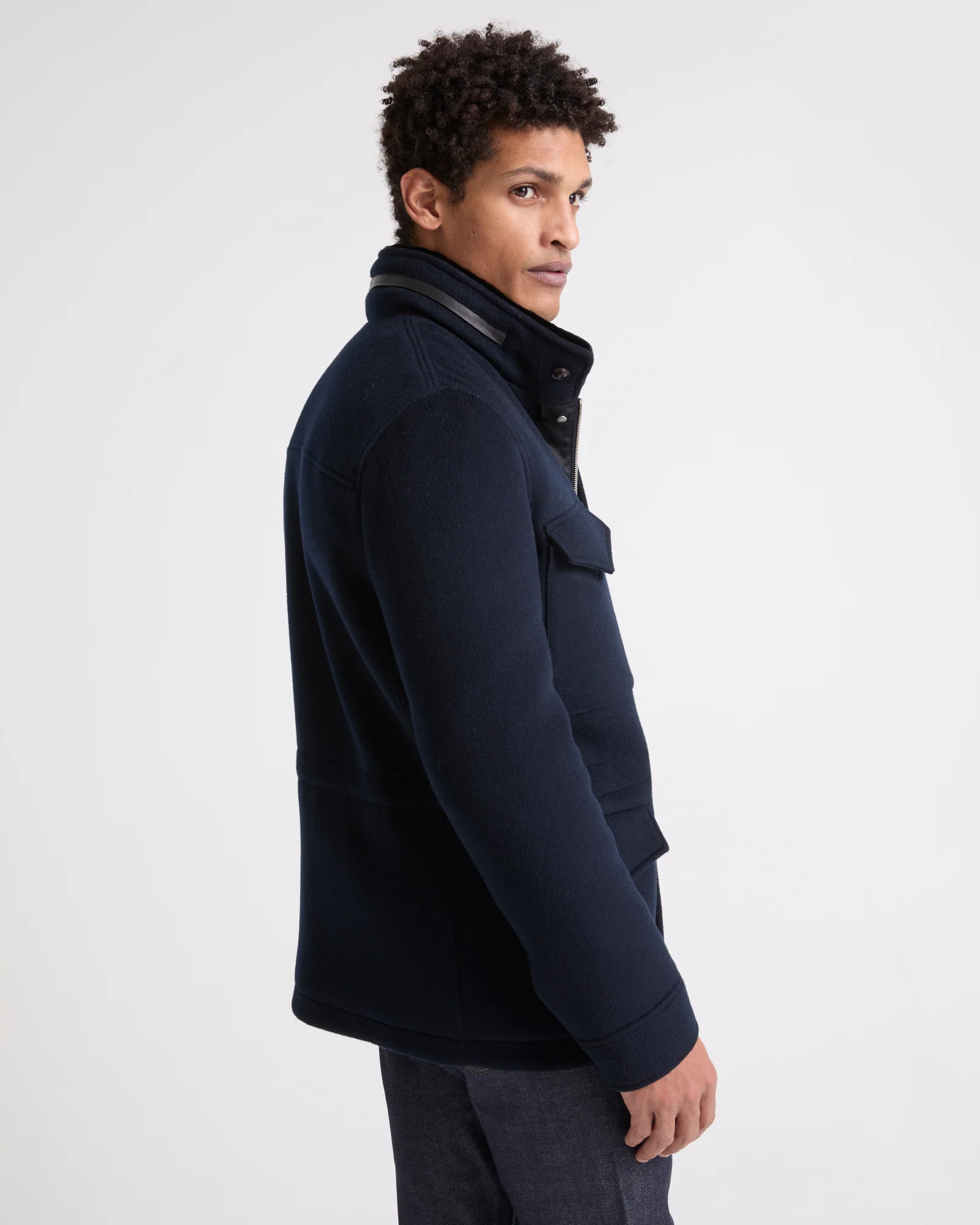 Field jacket in double-sided wool-cashmere with mink trim