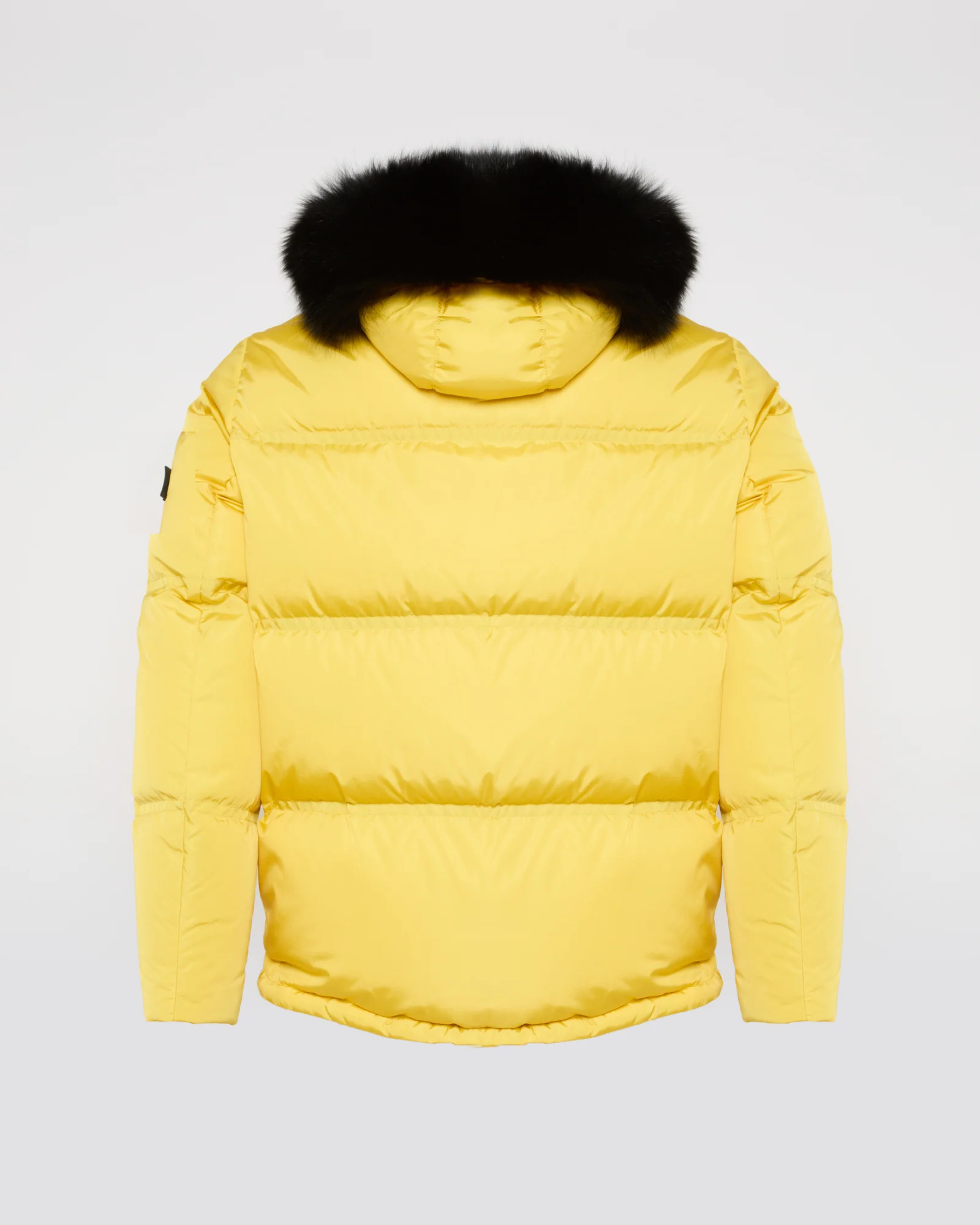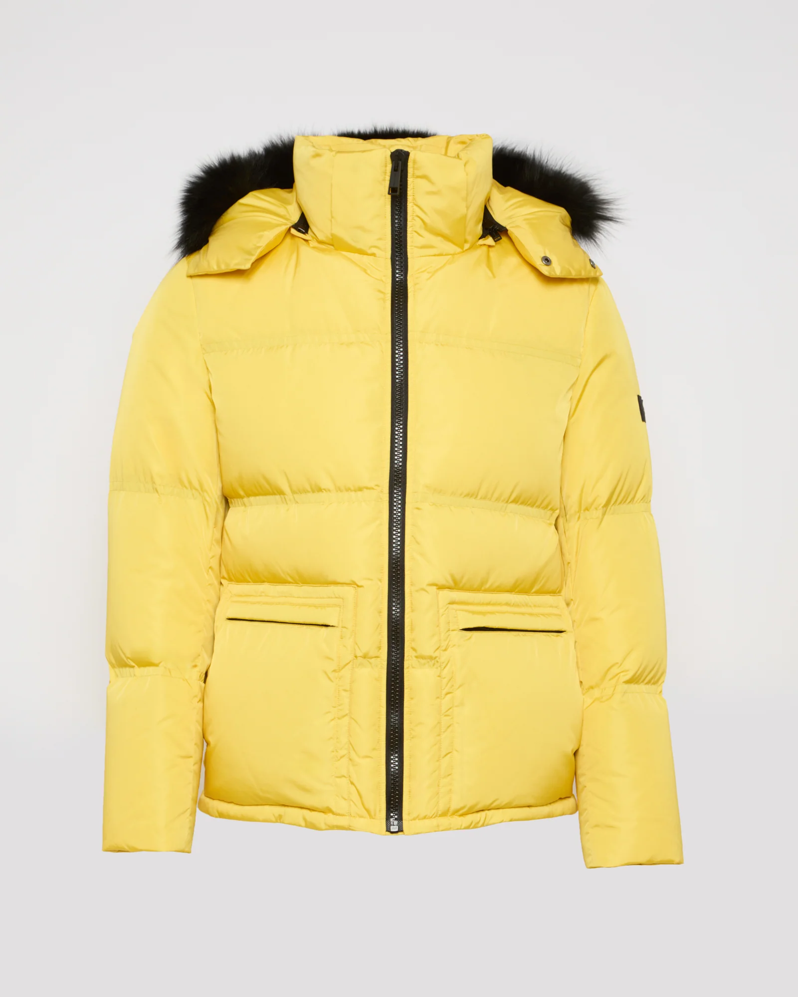 Gabardine down jacket with hood and fox fur trim – Technical gabardine fabric down jacket filled with high-quality feathers and down– Length: 94 cm– Detachable hood– Detachable fox fur hood trim– Zip fastening– Invisible technical ribbed cuffs at sleeve ends– Two small flap pockets with snap closure on the upper front– Adjustable drawstring hem