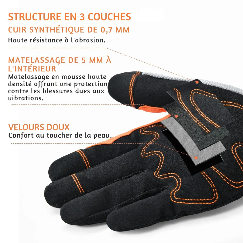Protection Anti-Vibration : Grâce à sa mousse anti-vibration et sa conception renforcée pour les articulations, ce gant absorbe les chocs et réduit la fatigue des mains.