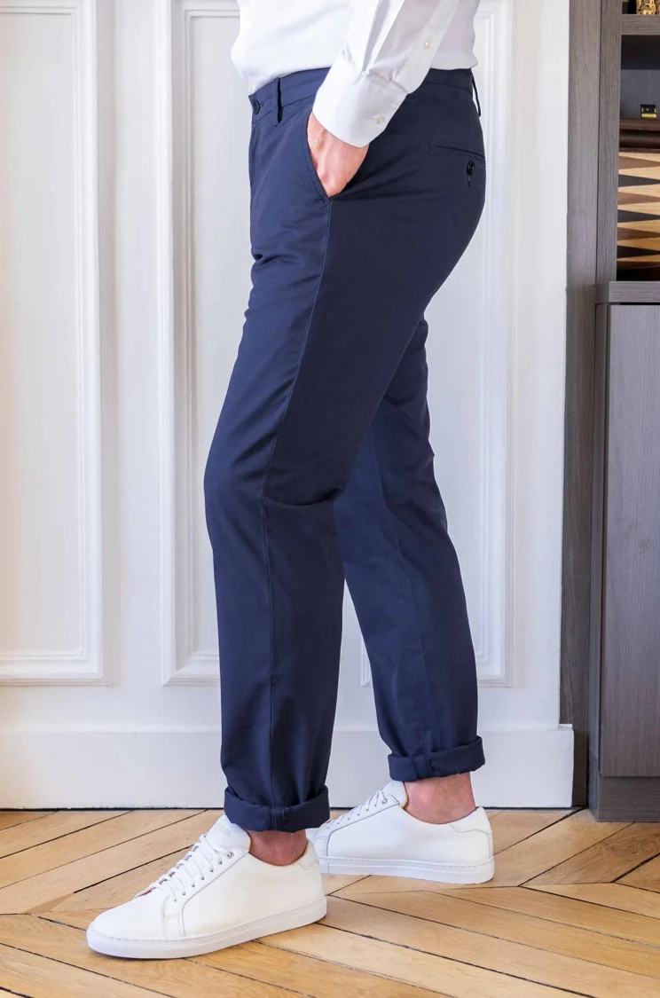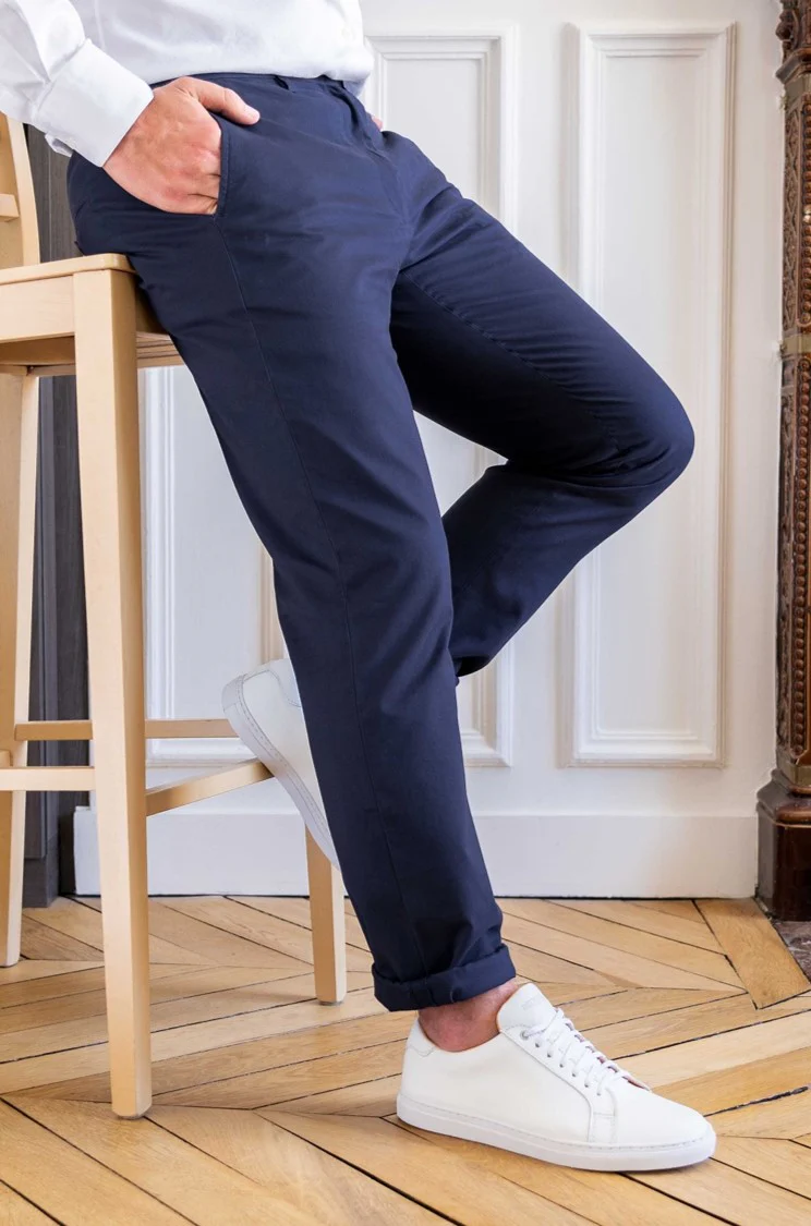 Le chino Henry est un incontournable du vestiaire masculin. Vous pouvez le porter avec des sneakers en mode casual ou des chaussures plus habillées pour des occasions plus guindées. Il vous accompagnera partout et toute l’année. Bref, un basique comme on les aime.