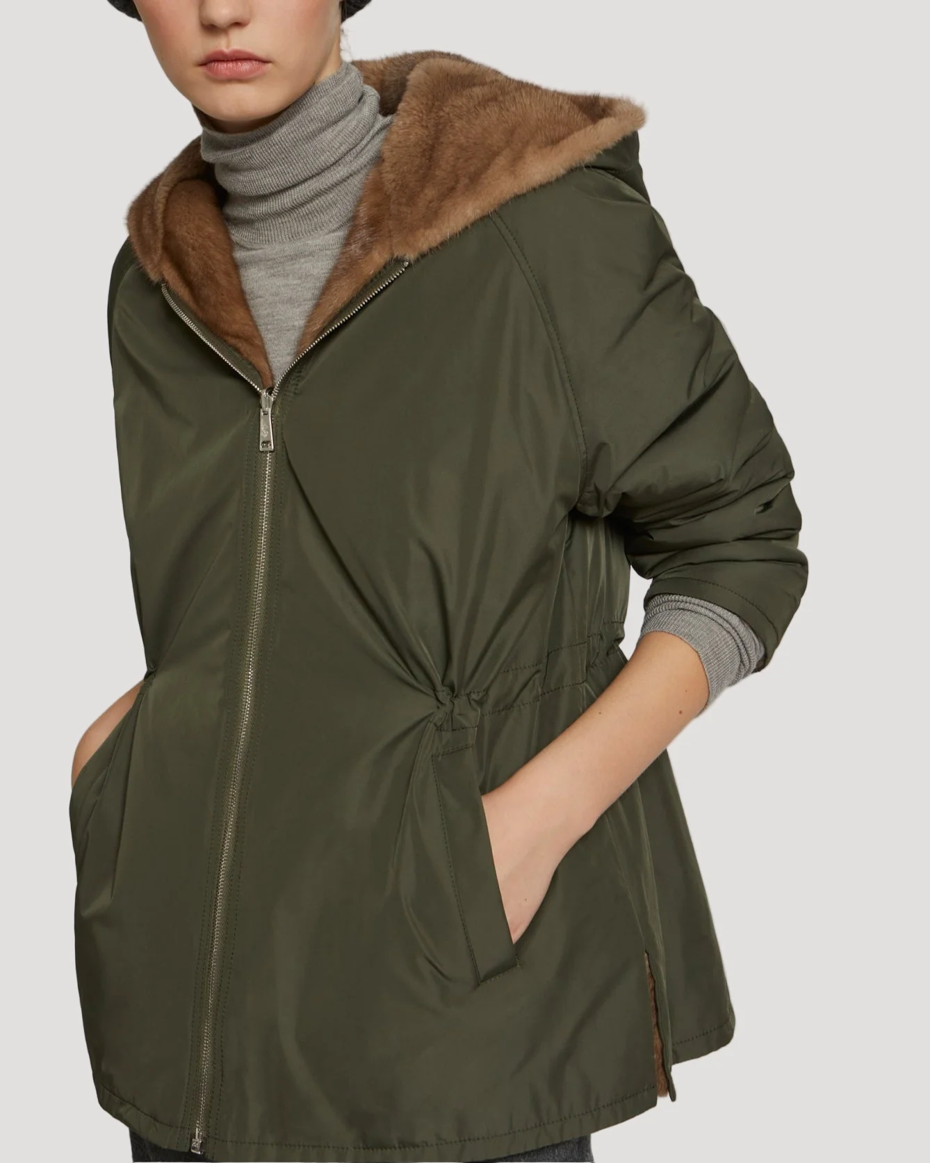 Fitted Parka In waterproof Technical Gabardine And Mink fur