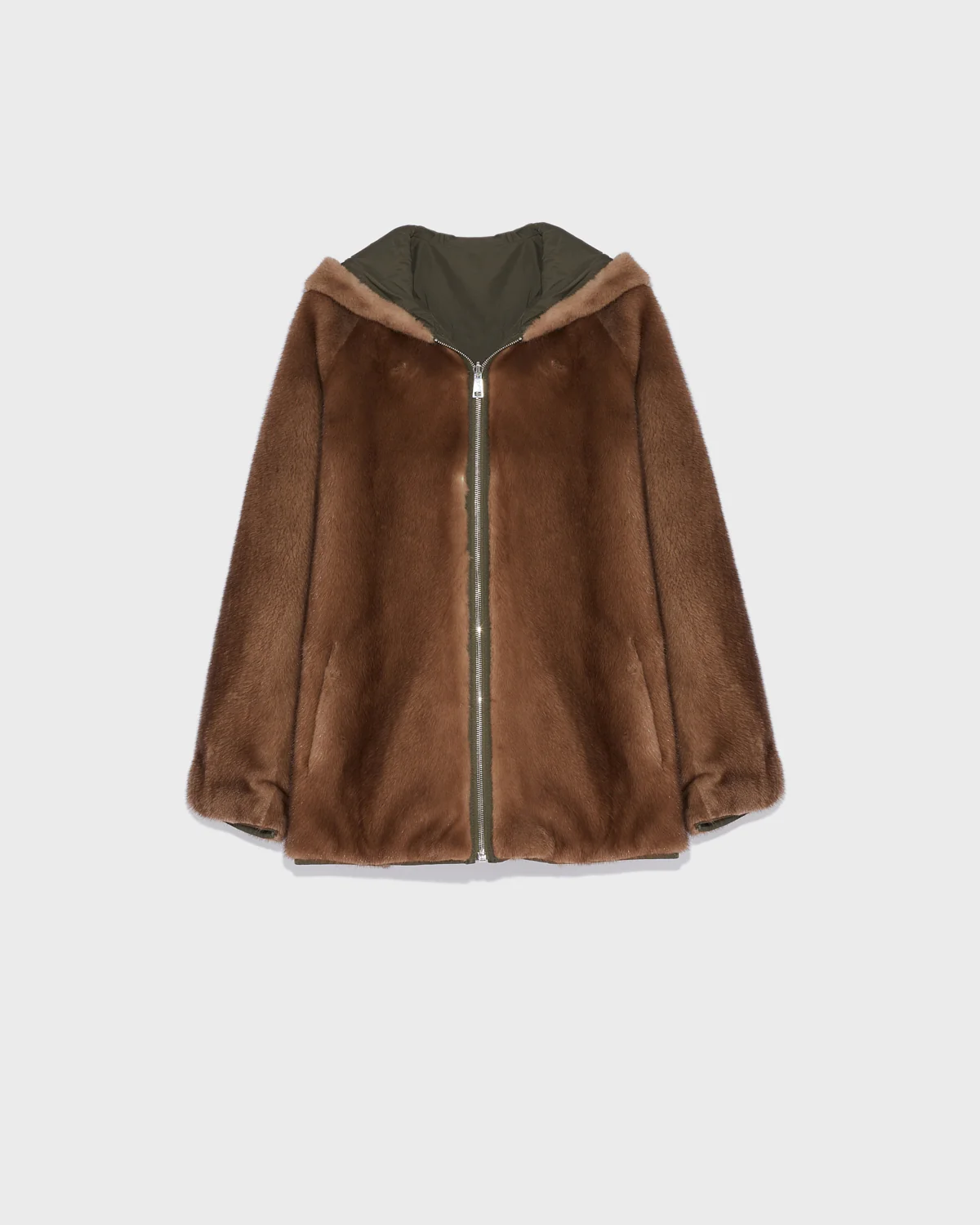 – Reversible design: one side in technical fabric and the other side in long-haired mink fur