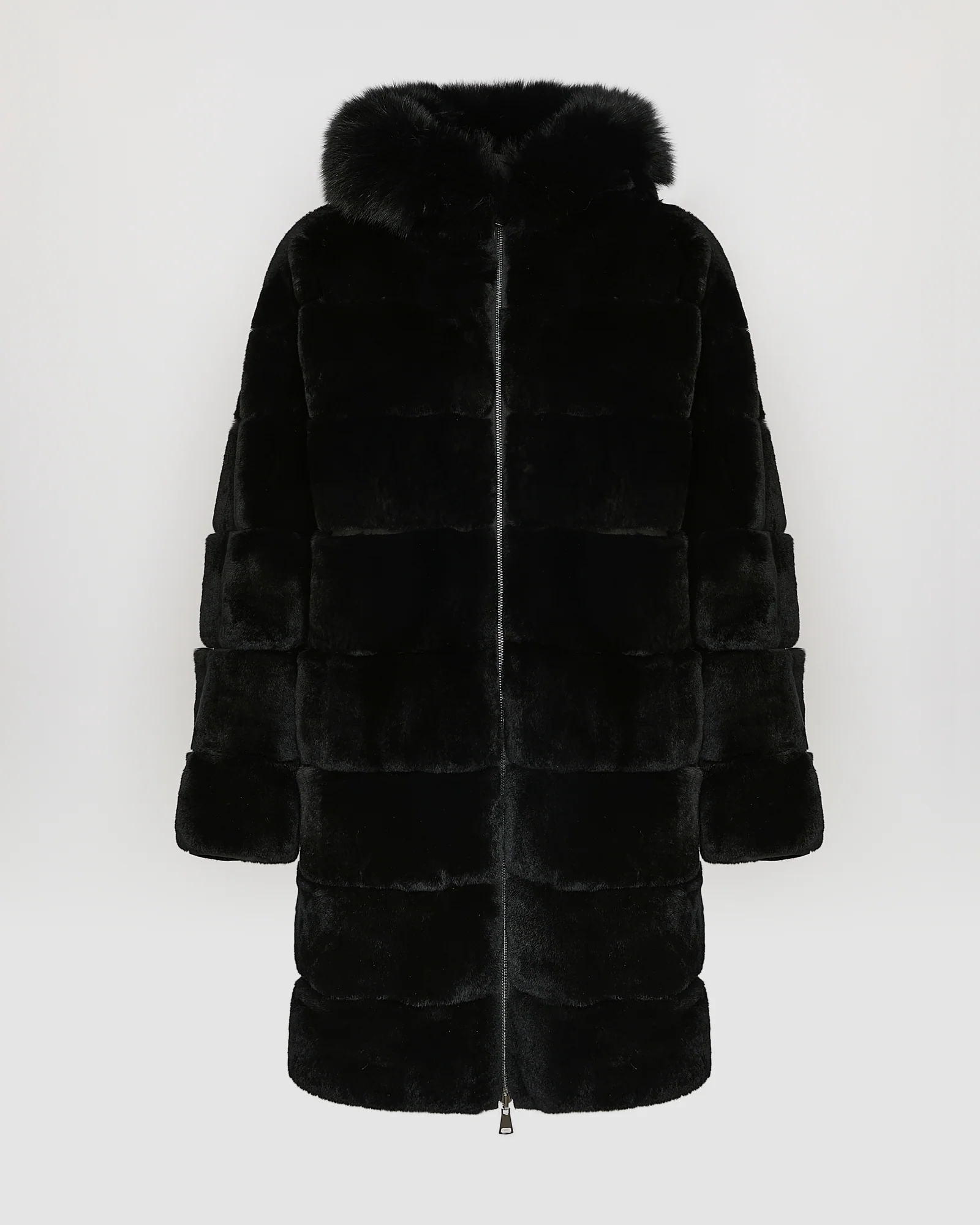 Soyez le premier à laisser votre avis sur “Hooded coat in technical fabric reversible rex rabbit fur”