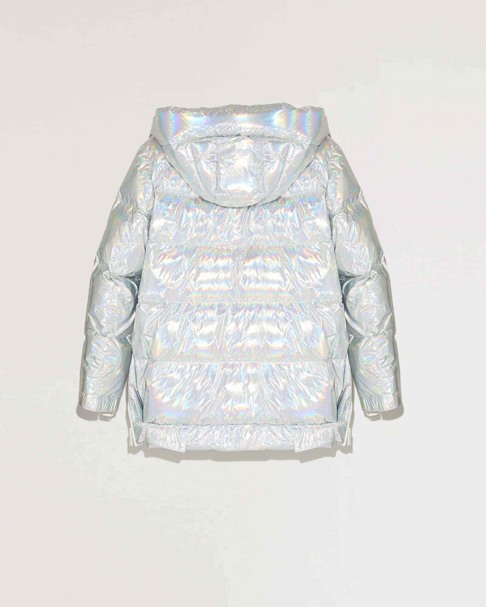 – Down jacket in technical fabric filled with high-quality feathers and down