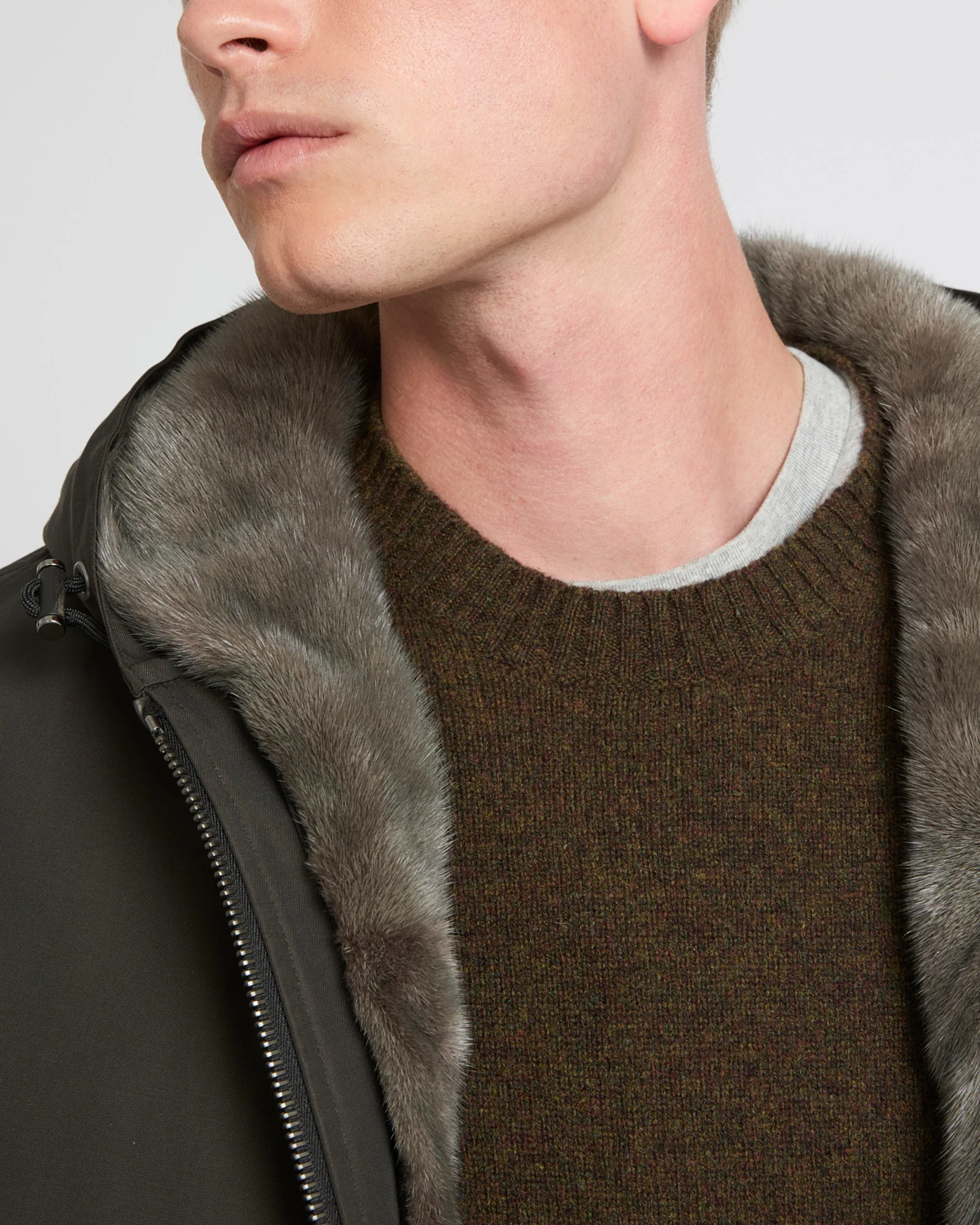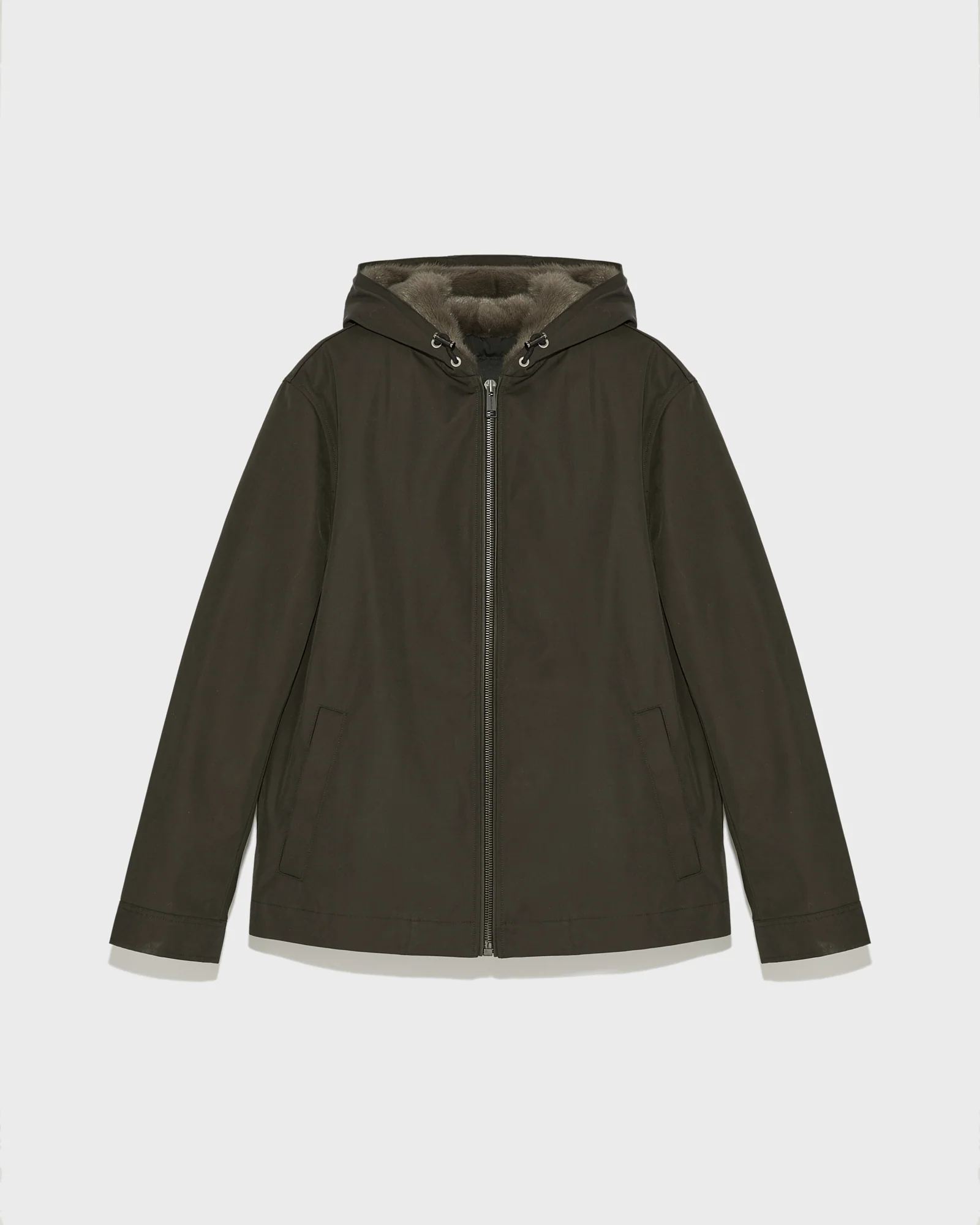 – Inside hood and facing in long-haired mink fur