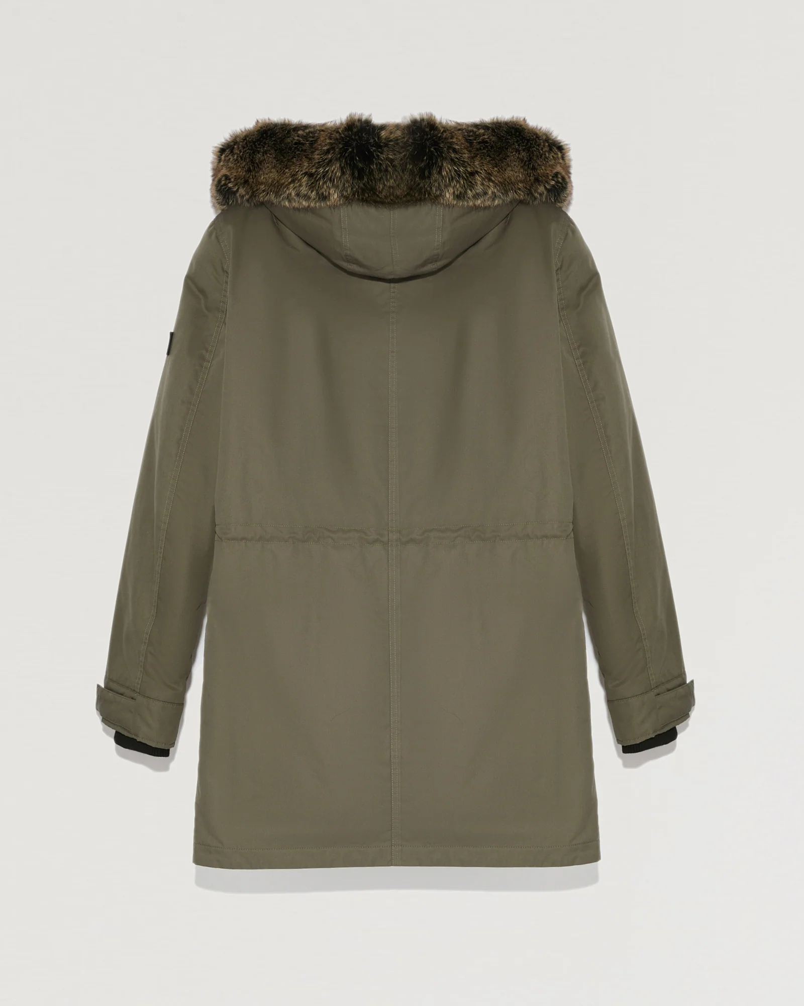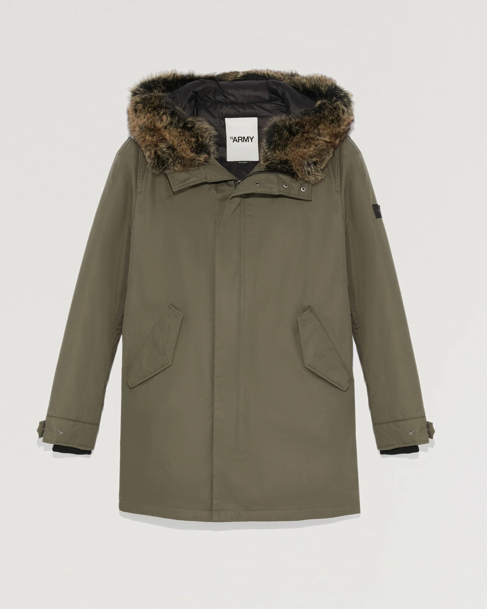 Hooded parka with fox fur – Parka in technical fabric filled with high-quality feathers and down– Length 90 cm– Non-removable hood– Removable fox fur hood trim– Front zip fastening and press stud tab– Slit pockets with flap with press stud– Adjustment tab with Velcro closure at the bottom of the sleeves– Yves Salomon Men Collection