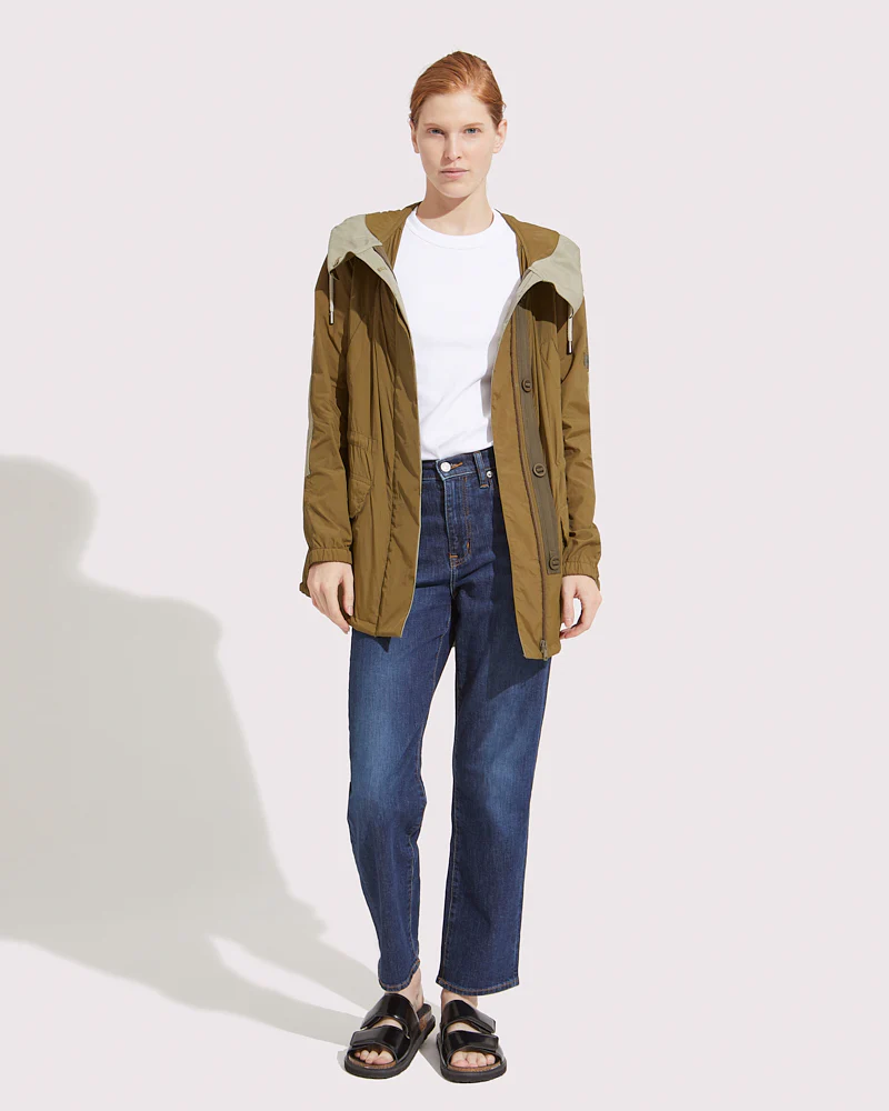 Iconic short parka revisited in a waterproof version