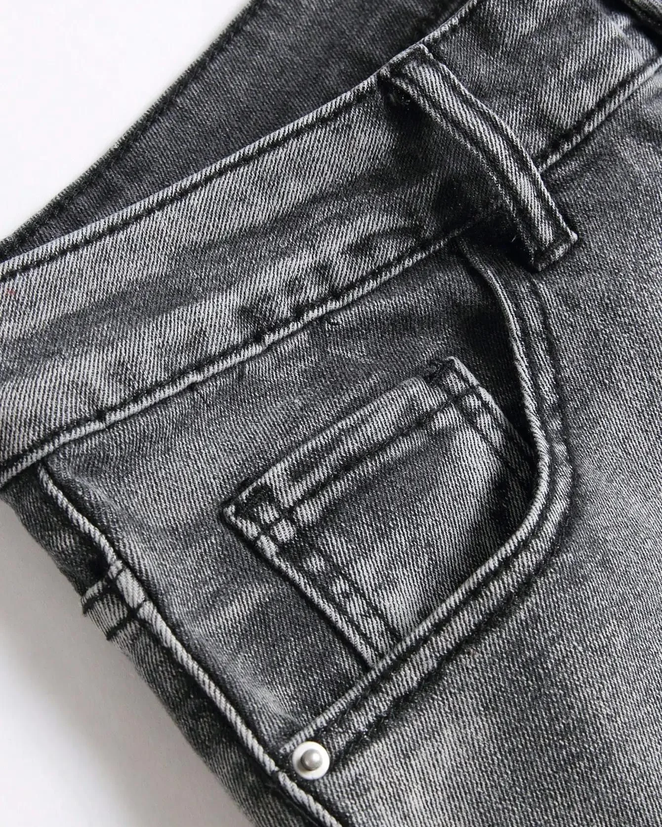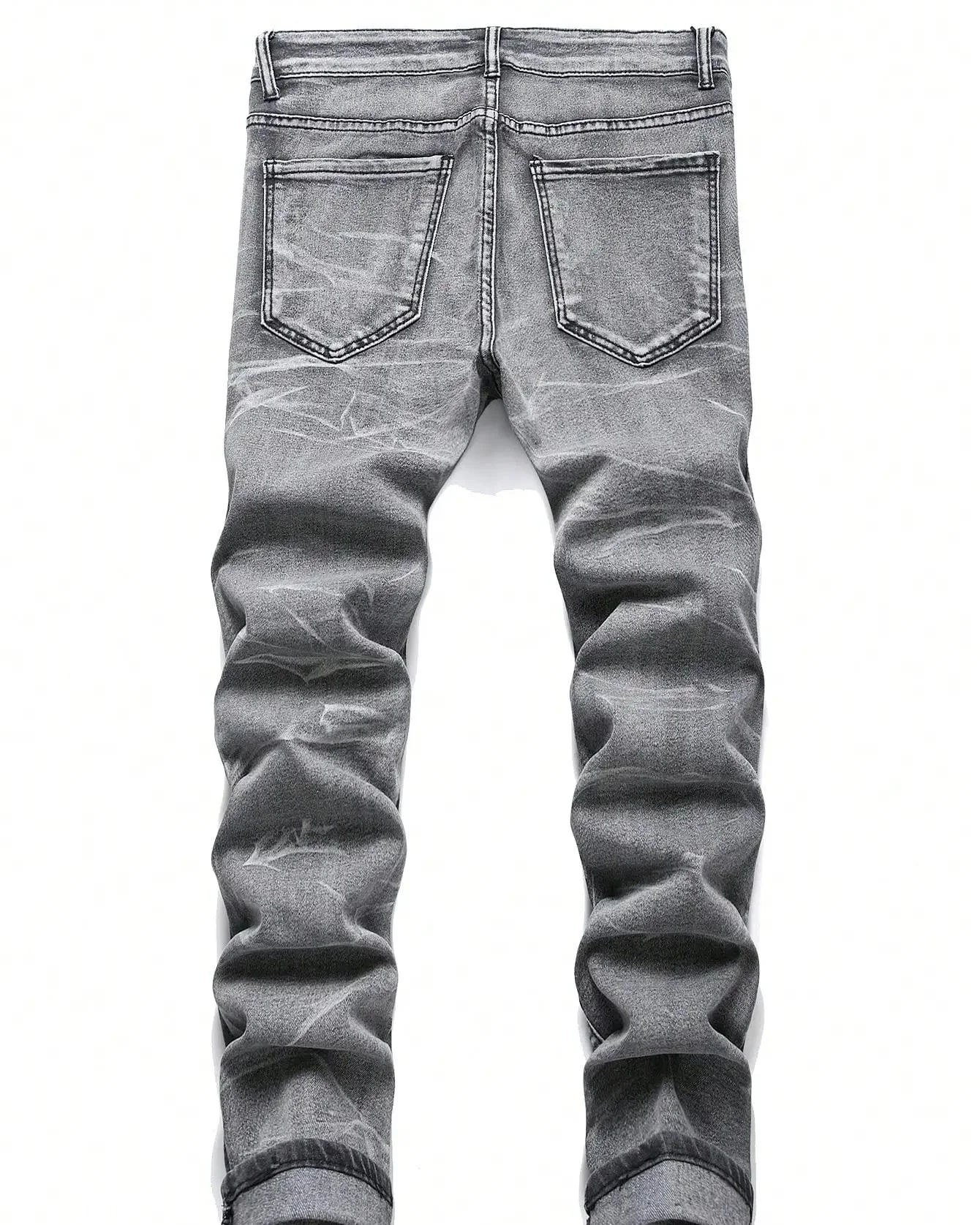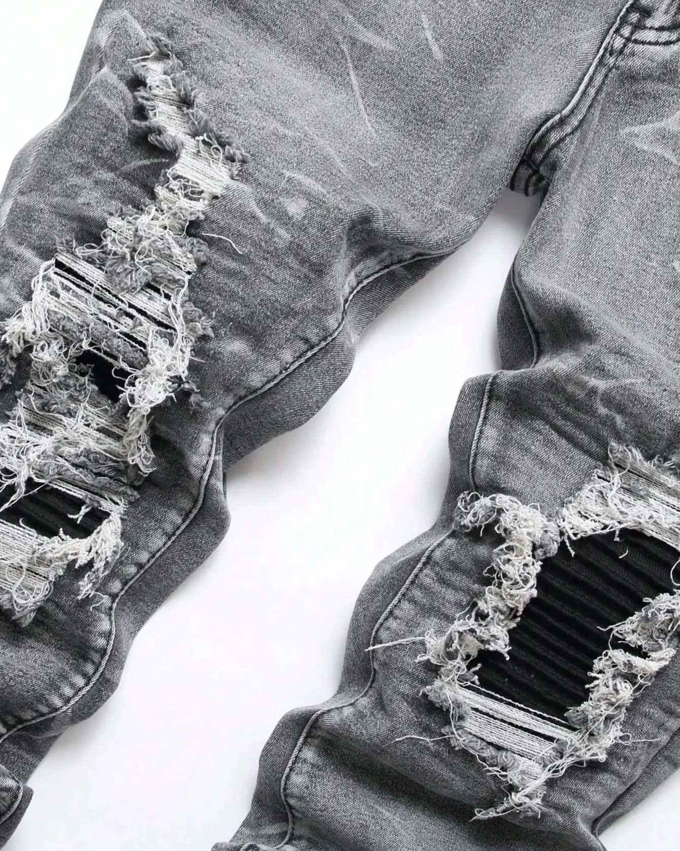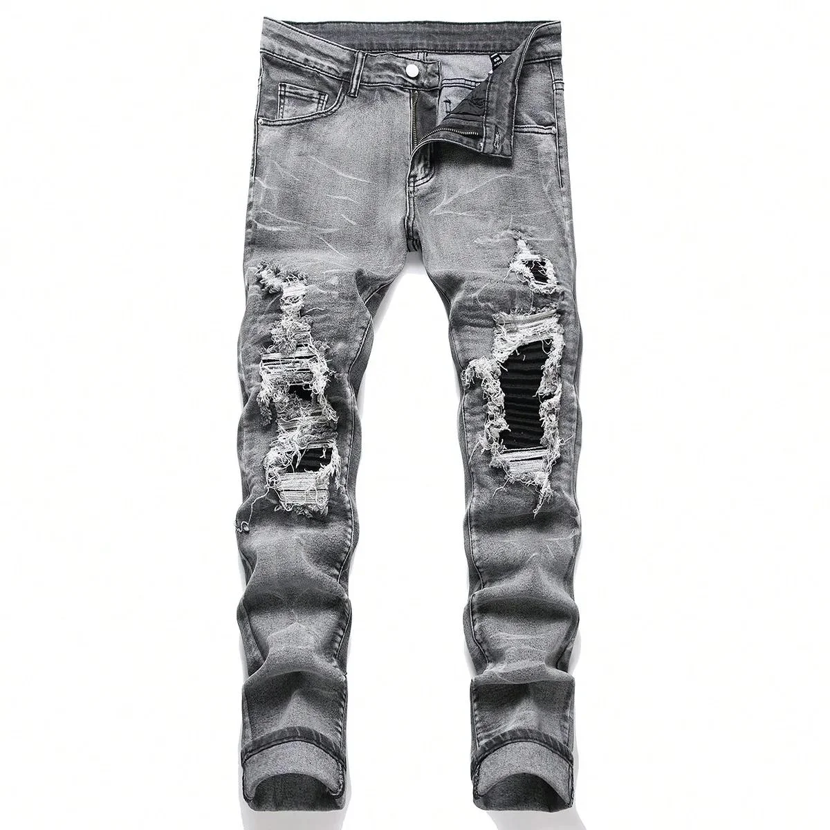 Streetwear déchiré, patchwork déchiré Trous, taille élastique, pantalons décontractés Coupe couvertes, coupe droite