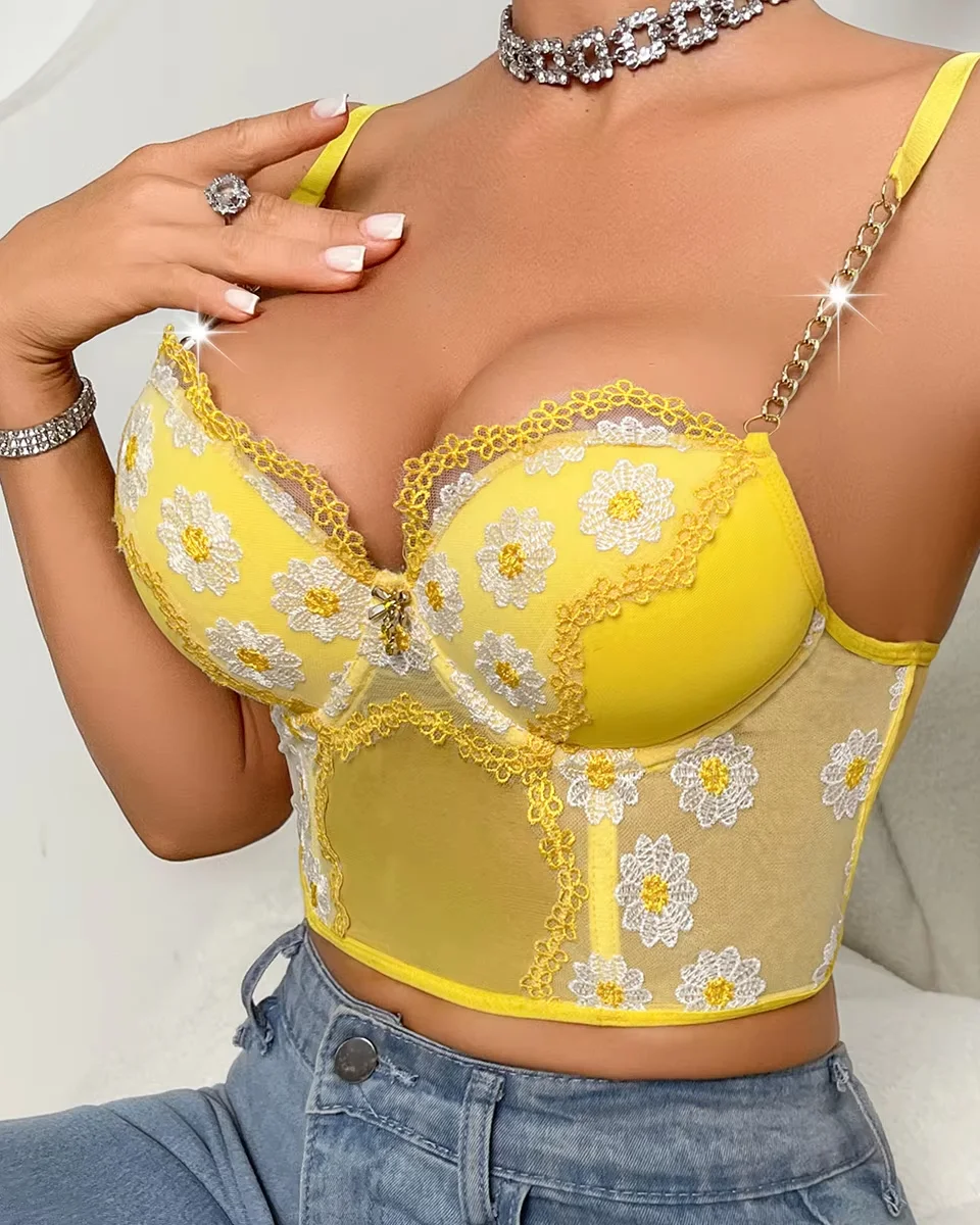 Nouvelle offre spéciale femmes Sexy Daisy Collection Lingerie dos nu pure broderie classe