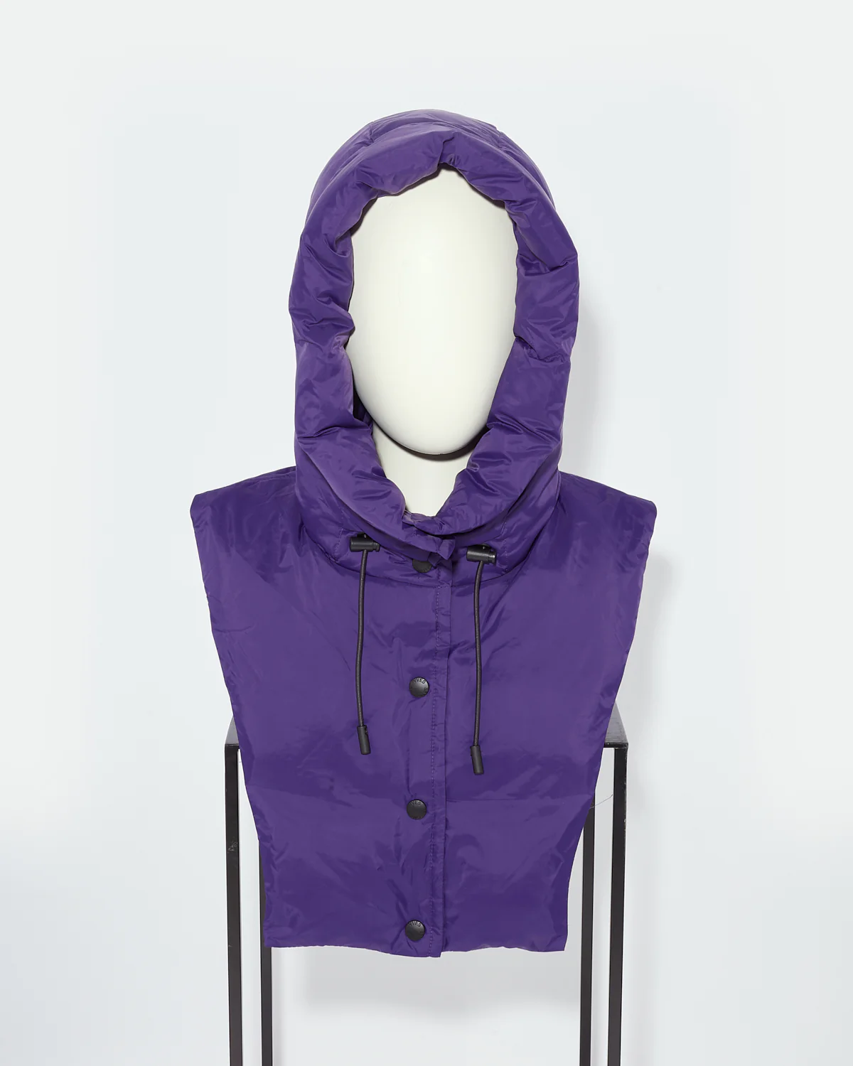 The iconic down jacket turns into a statement accessory for a resolutely modern look. Crafted from a water-repellent technical fabric and padded with high-quality down and duck feathers to guarantee comfort, warmth and breathability, this hooded bib features a drawstring and a press-stud fastening. Lightweight, functional and edgy, it’s a new essential to mix and match with the other pieces of the collection for a new contemporary silhouette.