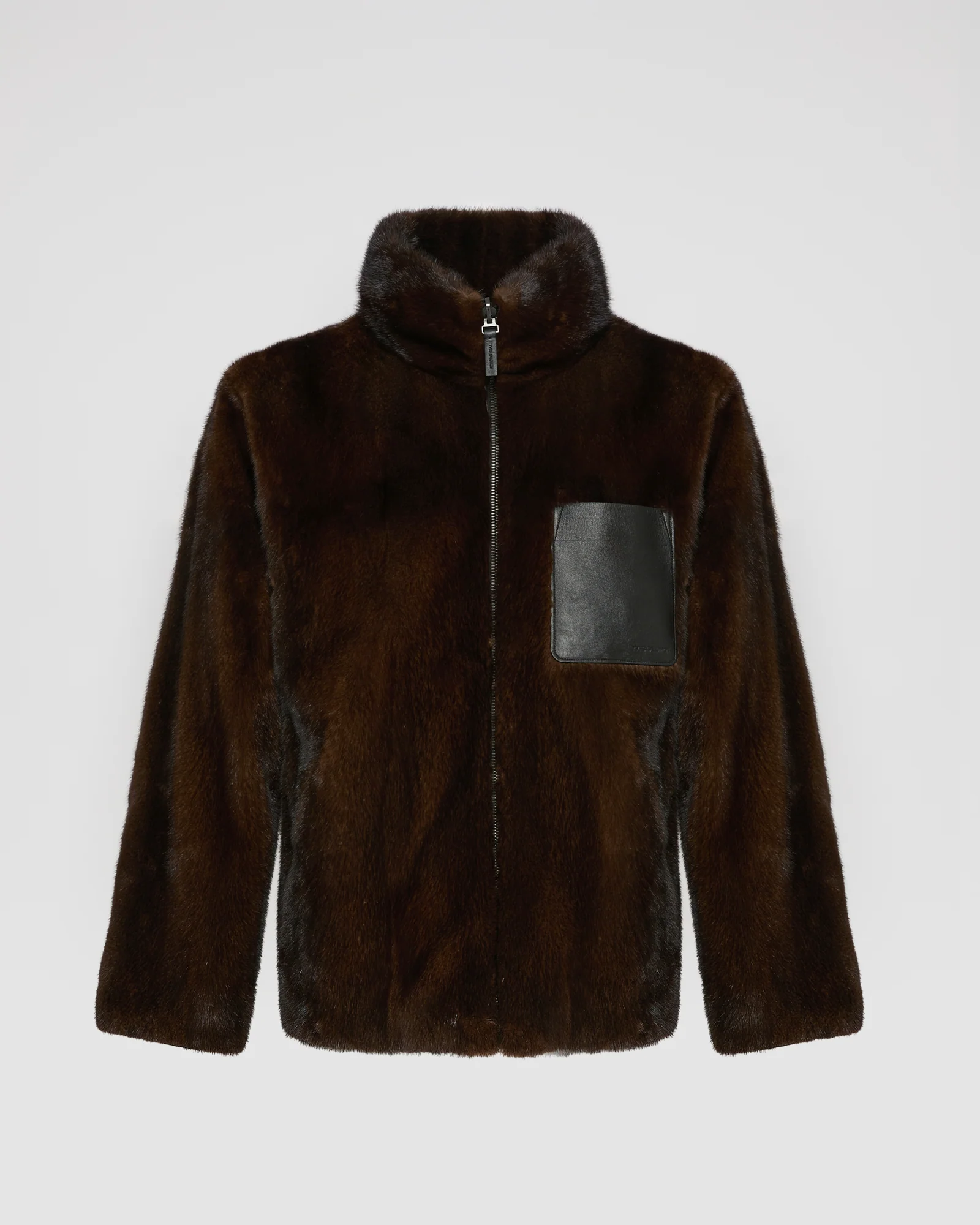 – Leather zip protection lip and chest patch pocket details