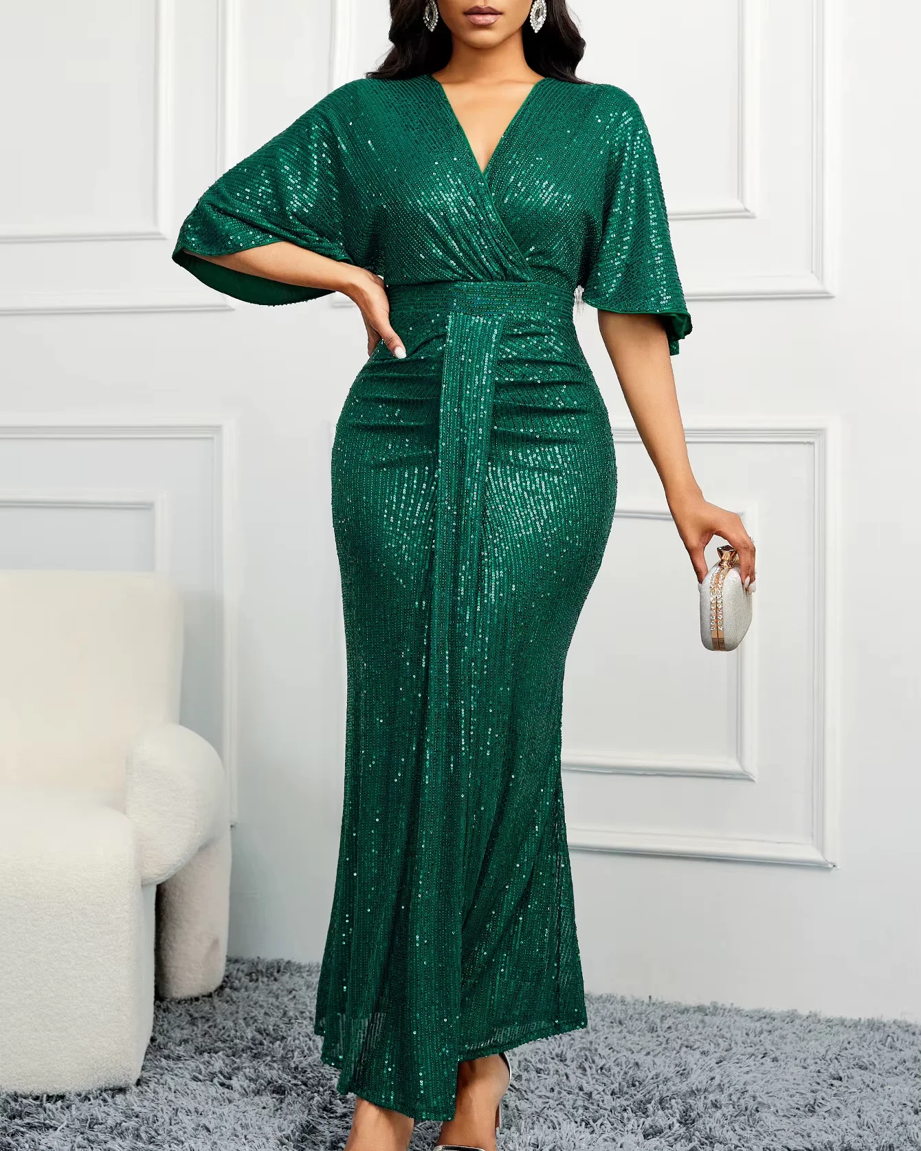 Soyez le premier à laisser votre avis sur “Robe de cocktail plissée à col en V profond pour femmes”