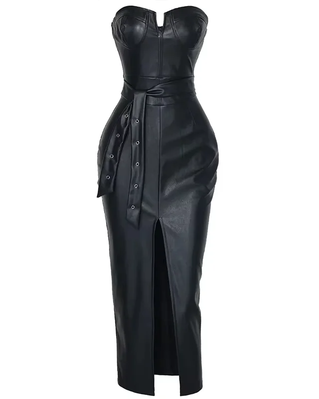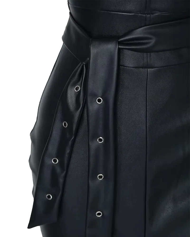Combinaison sexy en cuir PU – Col licou, maille épissée et design ajouré, lingerie cosplay en polyester