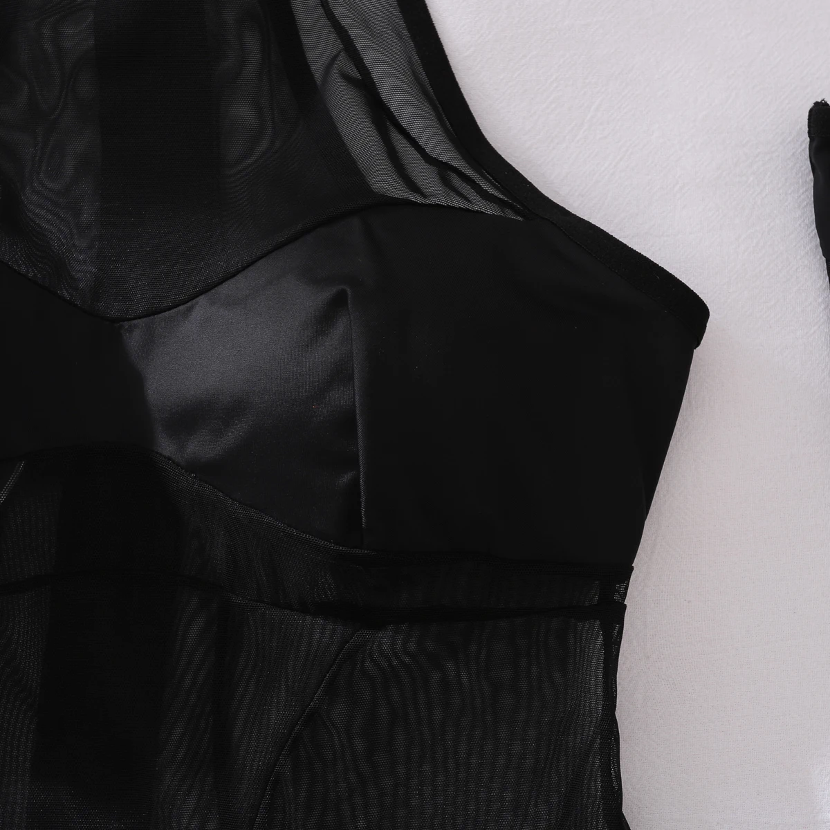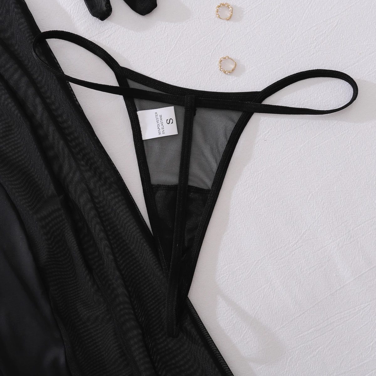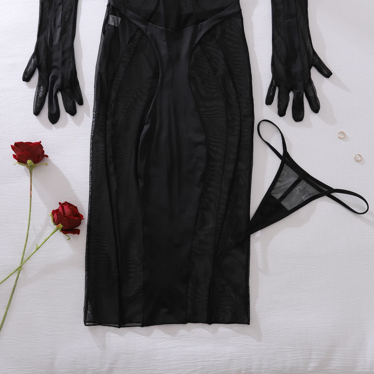 Robe femme sexy – Gaze transparente irrégulière, design patchwork sculptant, set 3 pièces avec gants