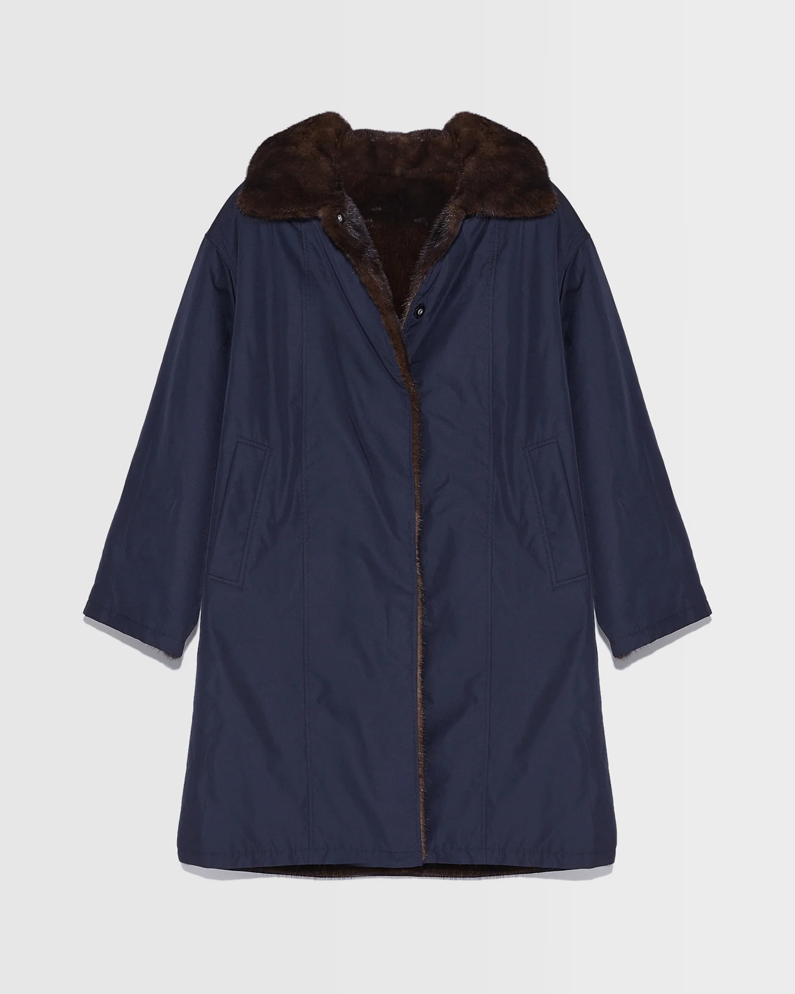 – Hood with removable trim in natural-style lustrous blue frost fox