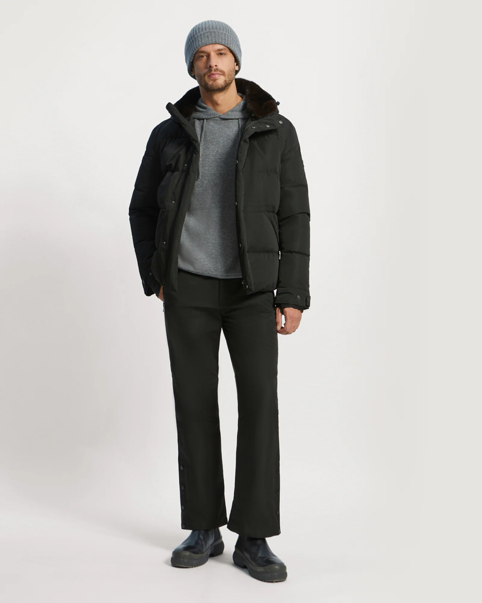 Combining style with performance, this down jacket specially conceived for winter sports features a number of details to protect the wearer from weather conditions, including waterproof zips and inner ribbing. The mink-trimmed hood provides a touch of elegance. This garment is equipped with the RECCO system which alerts rescuers to your location in case of an avalanche.
